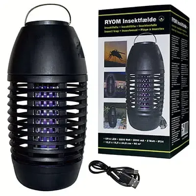 Ska man bekämpa myggor inomhus kan man använda sig av en myggfälla som består av en UV-lampa. Fällan fungerar genom att UV-lampan först lockar till sig myggorna och därefter antingen grillar myggorna, fångar myggorna på ett klisterpapper eller fångar myggorna i en fångstkorg. Då myggfällan använder UV-ljus som lockmedel behövs inga skadliga, giftiga eller illaluktande kemikalier. Fällan är oftast enkel att placera, då de flesta myggfångare som använder sig av UV-lampor både går att hänga upp och ställa på marken.