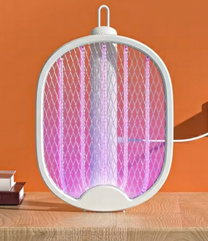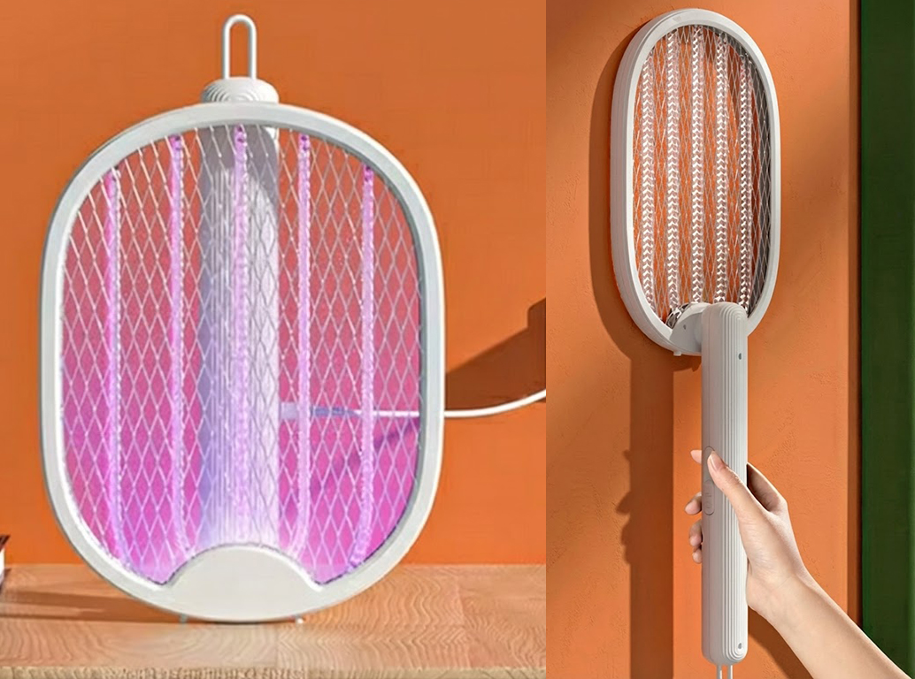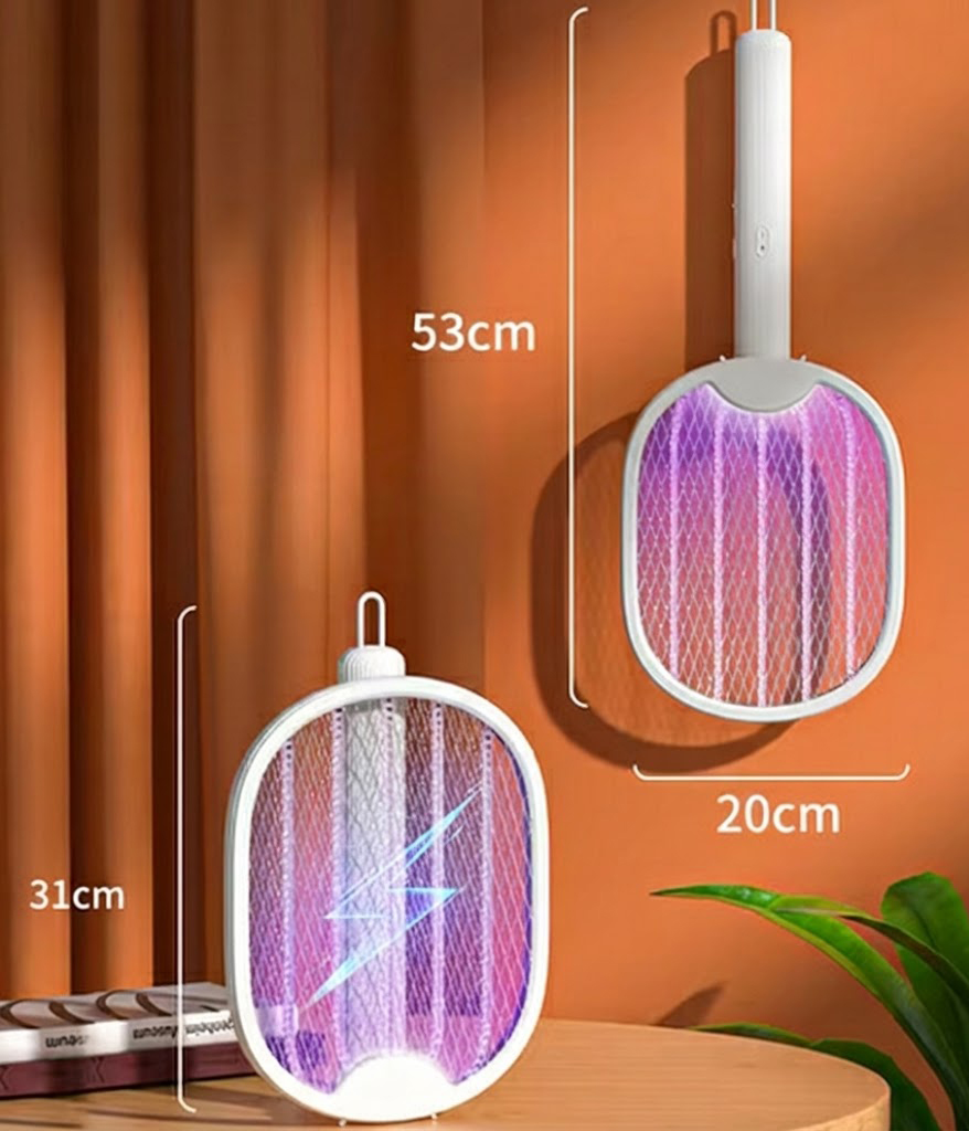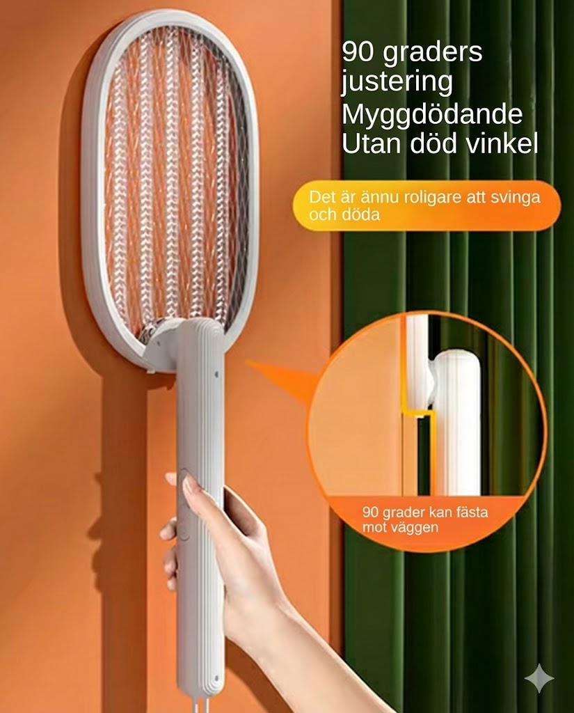 Denna innovativa myggdödare har en unik 180-graders vikbar design som gör den extremt mångsidig. Använd den som ett klassiskt handhållet racket för att jaga insekter, eller vik ihop handtaget och placera den på en plan yta (eller häng på väggen) för att använda den som en stationär mygglampa. I det stationära läget aktiveras ett UV-ljus som lockar till sig insekter och eliminerar dem automatiskt.