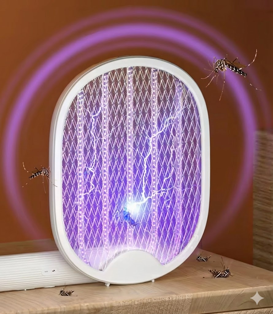 Håll hemmet fritt från mygg och flugor med denna smarta allt-i-ett-lösning. Kombinerar effektiviteten hos ett elektriskt racket med bekvämligheten av en automatisk myggfälla.