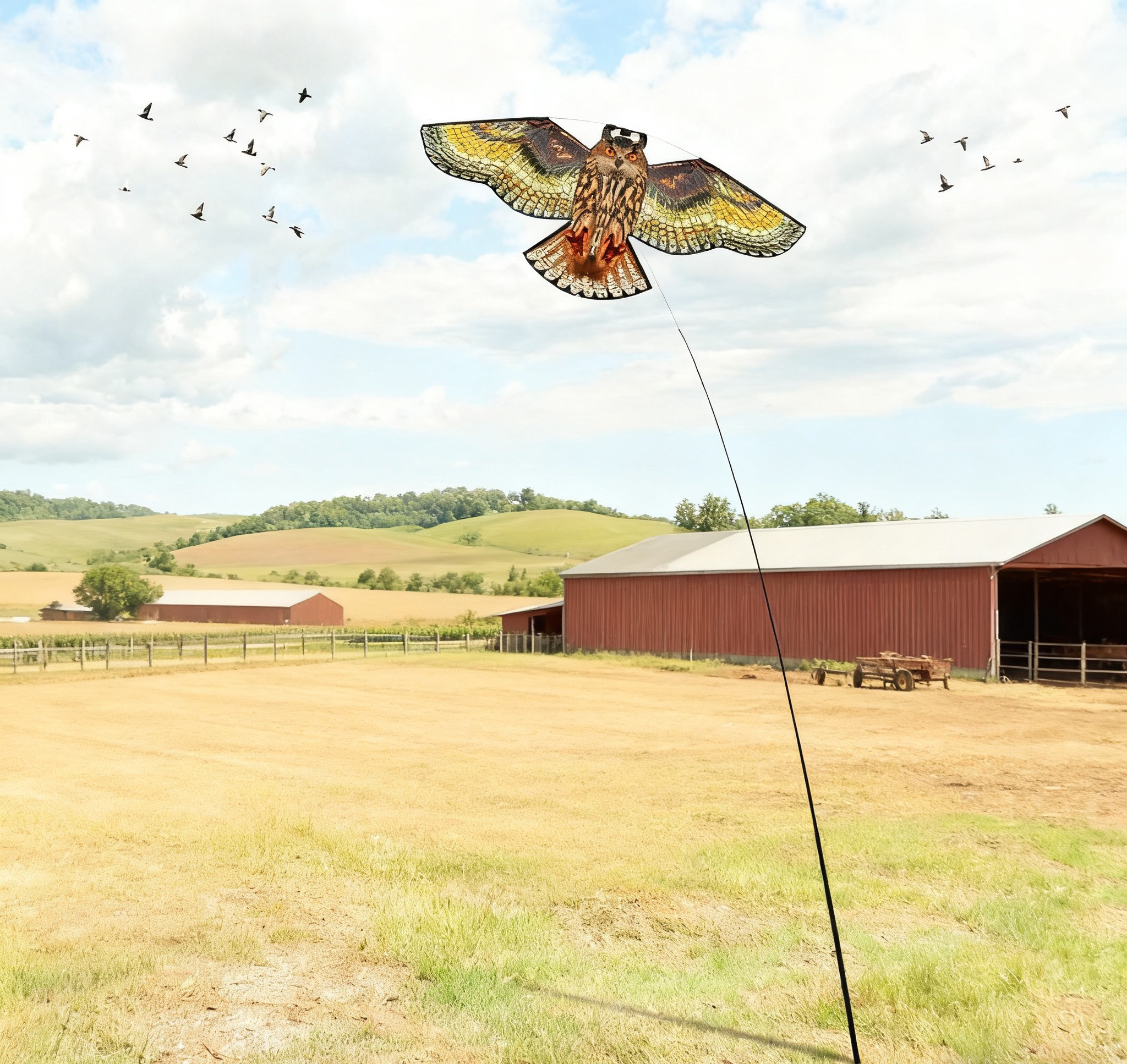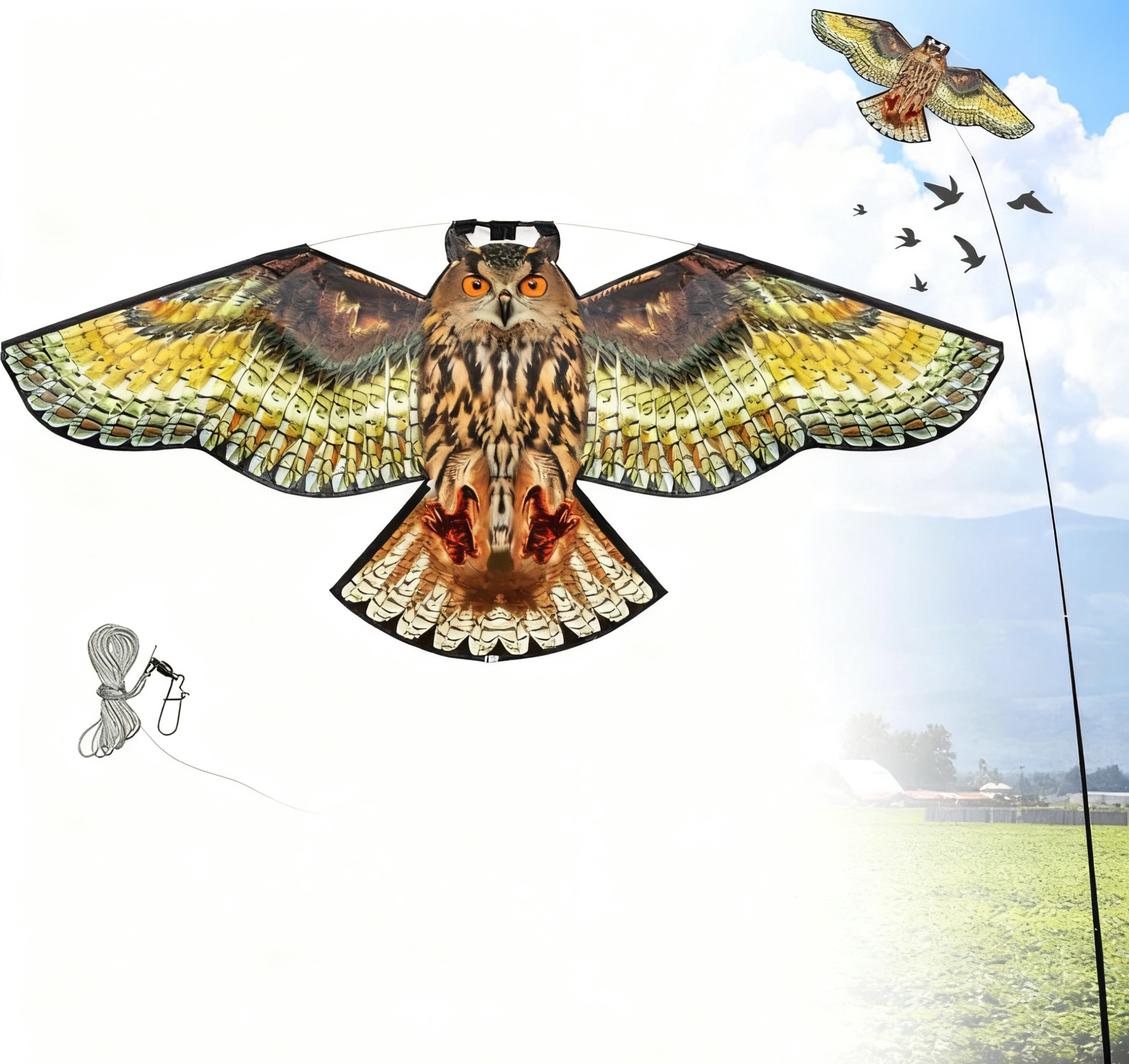 Tips: Ta alltid ned fågelskrämman vid hård vind (> 10 m/s) och låt draken torka inomhus efter regn för maximal livslängd.