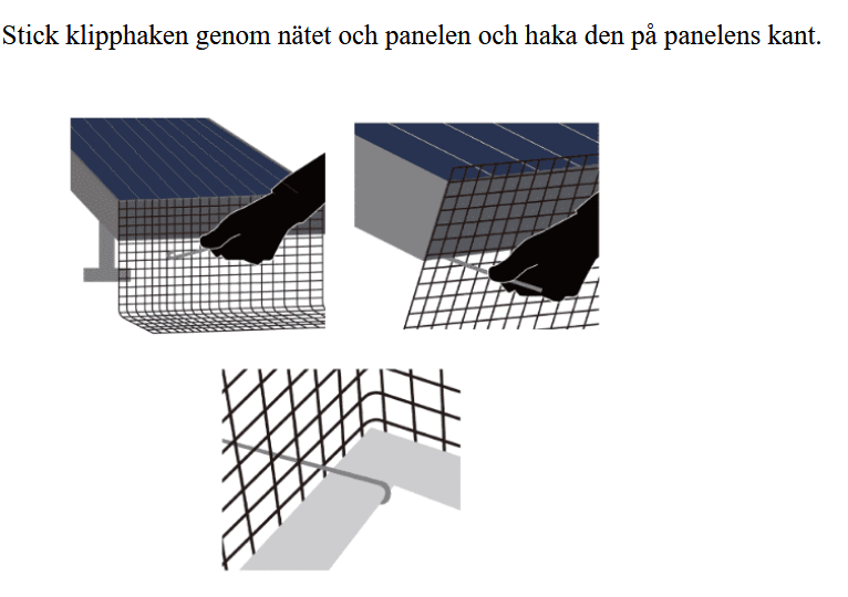 100 st klipphakar som fäster i solpanelerna medföljer.