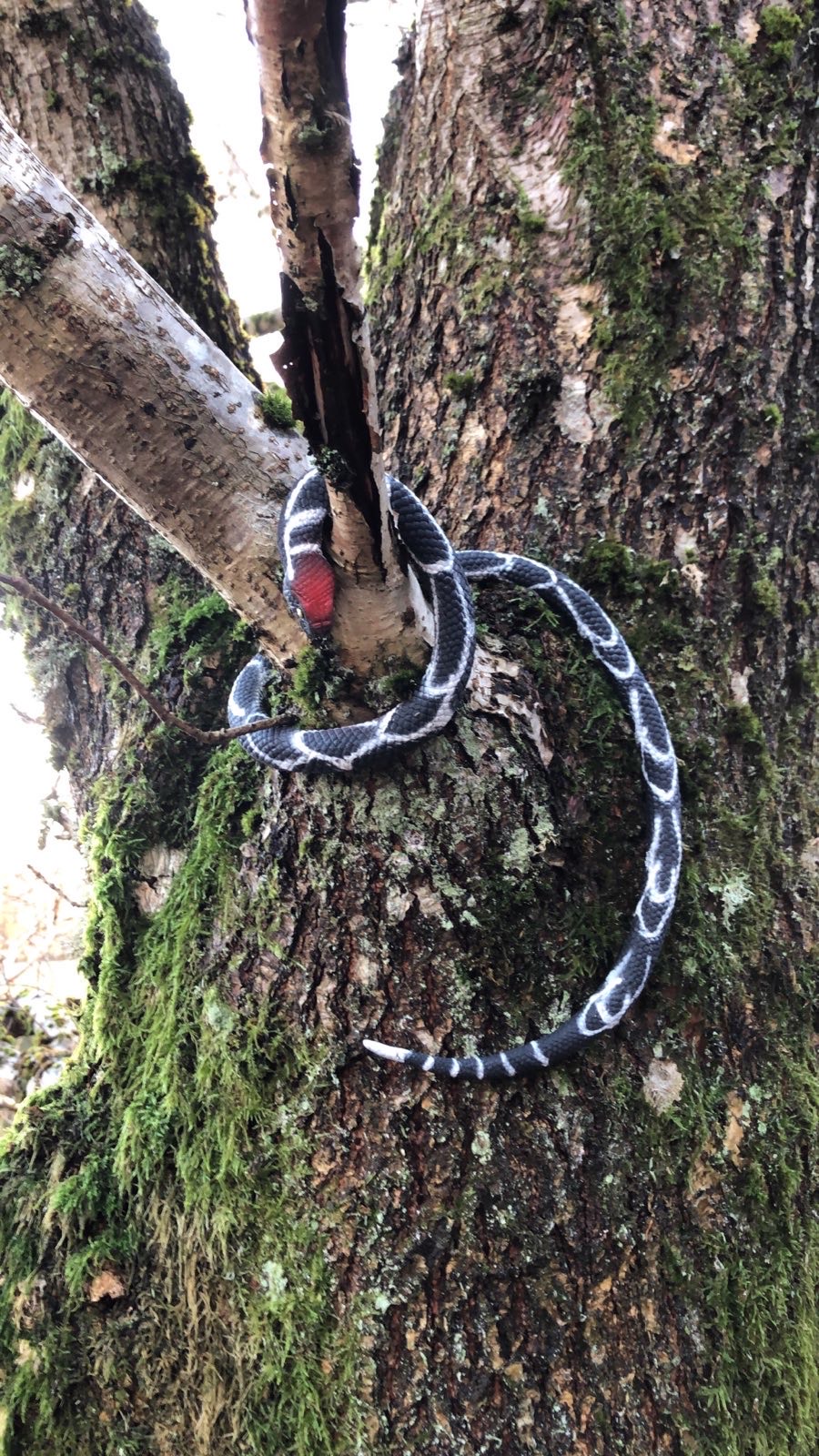 Realistisk design: Huggormen är 75 cm lång och noggrant utformad för att likna en verklig orms rörelsemönster och utseende, vilket gör den mycket avskräckande för fåglar.