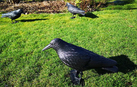 Flytta fåglskrämman, kråkan minst en gång i veckan så att fåglarna inte vänjer sig.