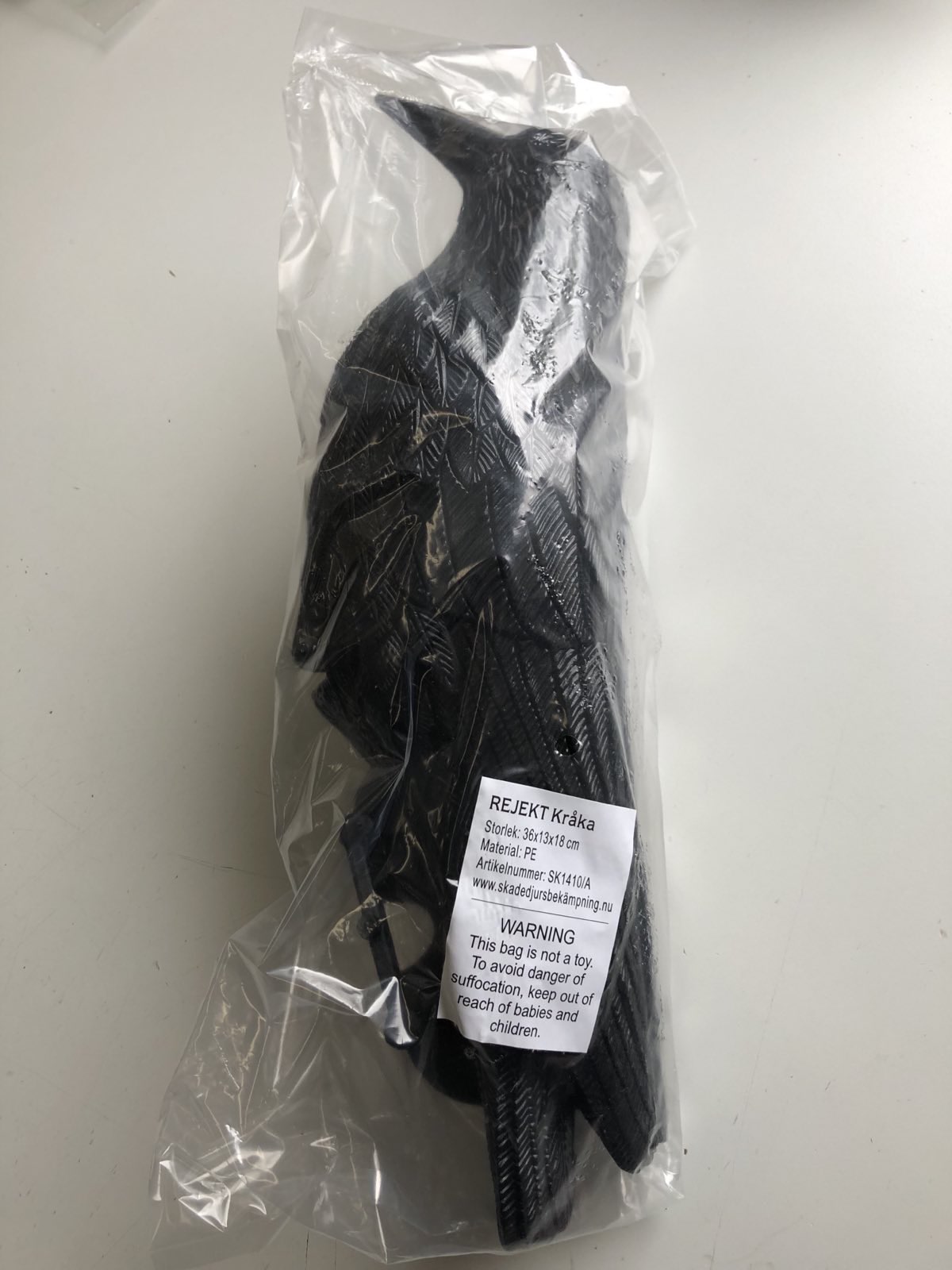 En robust och realistisk modell av en kråka i UV-stabil och väderbeständig plast. Med sin naturtrogna form skapar den en visuell varning som avskräcker oönskade fåglar från att slå sig ner på balkonger, uteplatser, i trädgårdar eller odlingar.