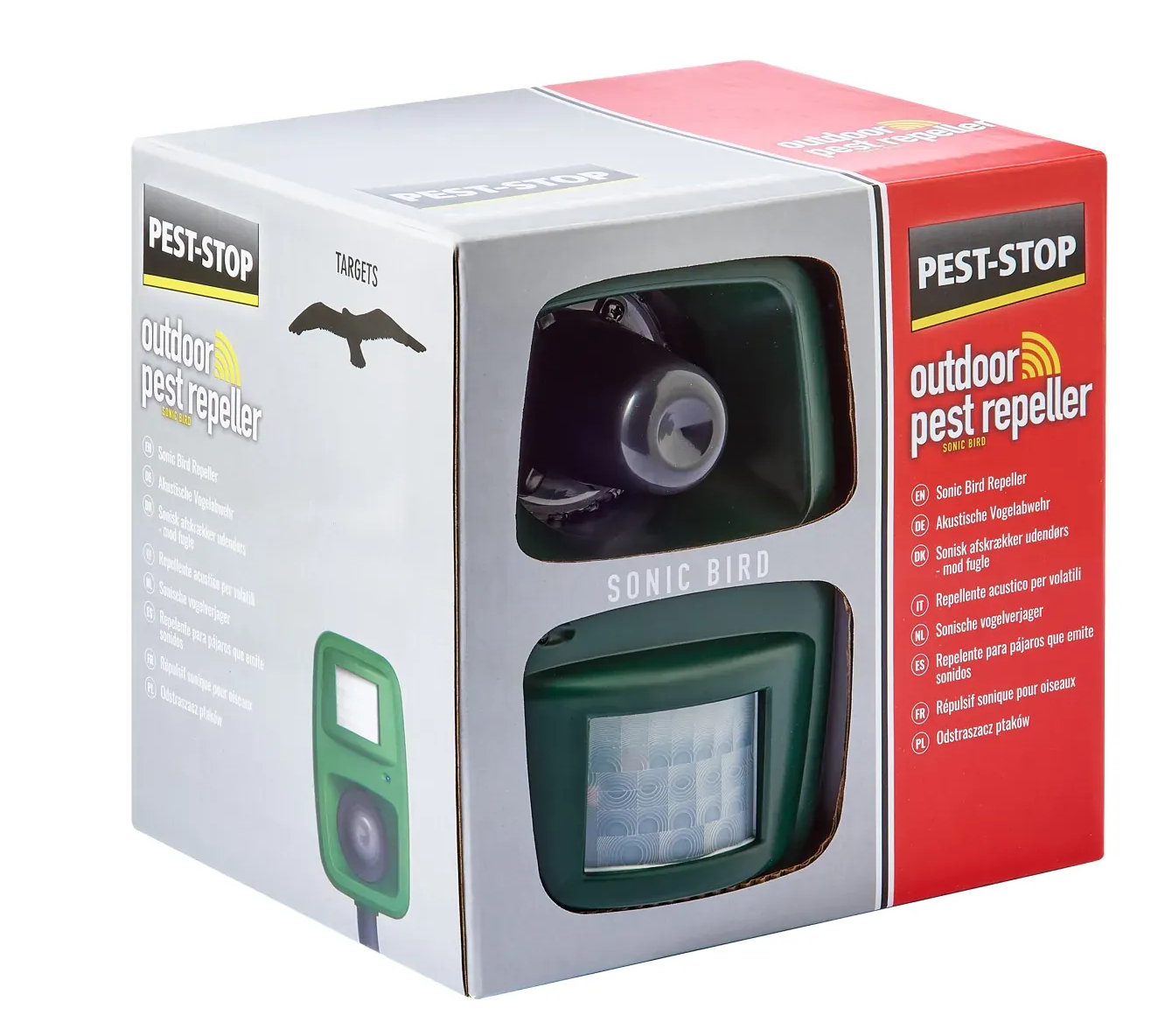 3 förprogrammerade varningsljud från fiskmås, hök och stare som skrämmer bort fåglar