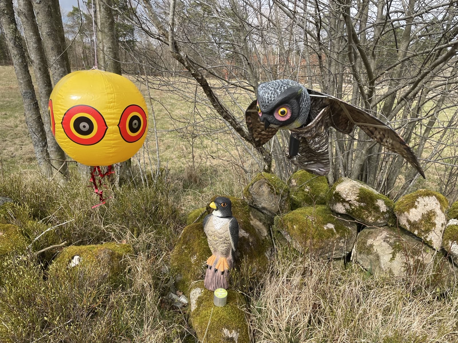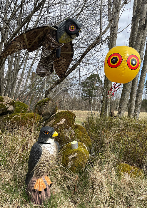 - Placera fågelskrämman: falk innan frukt & plantor mognar eller för att förhindra att fåglar vänjer sig vid att söka föda på platsen.