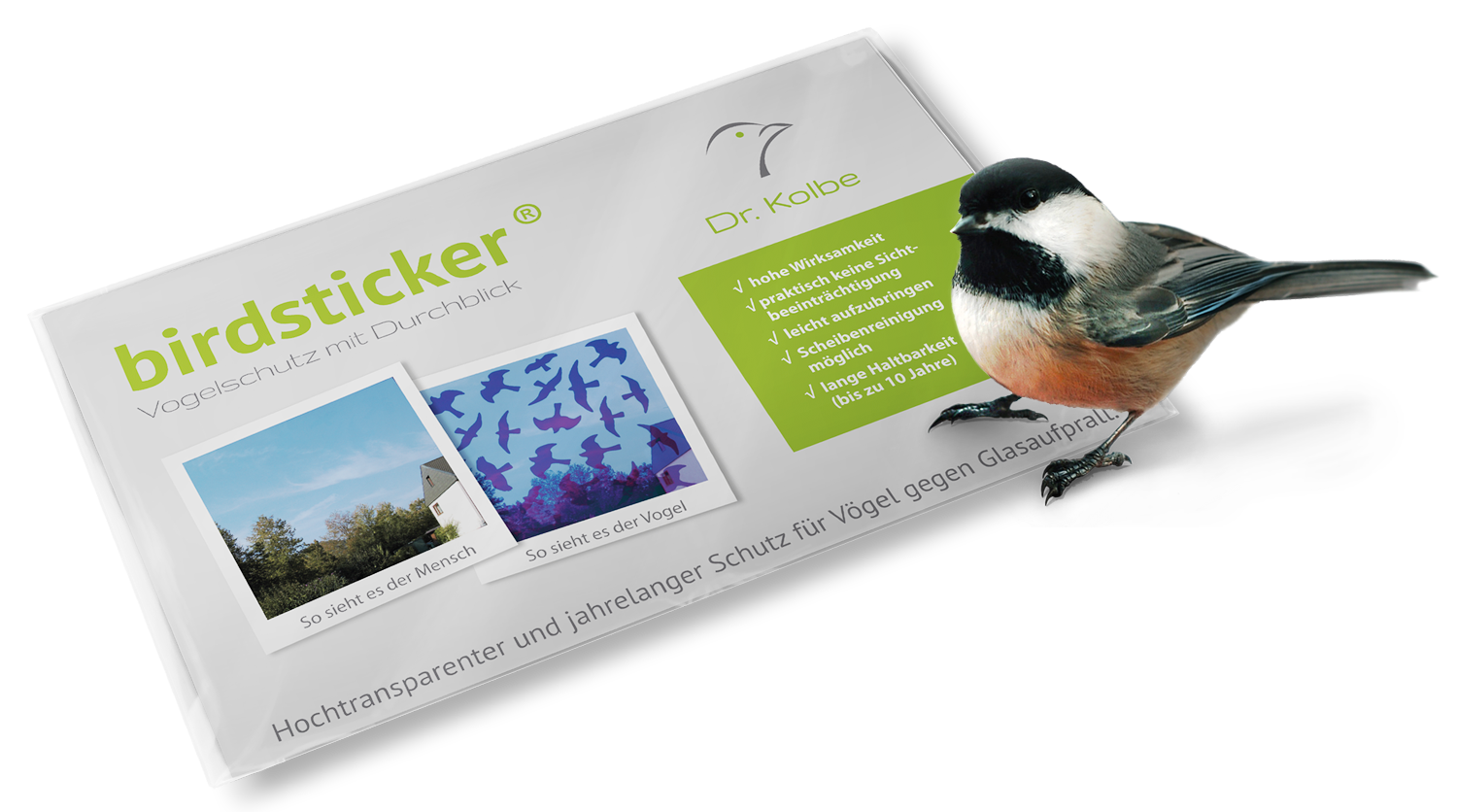 Med birdpen® och fågelsiluett® får du högkvalitativa produkter. För människor är ränderna och fågelapplikationerna nästan osynliga. De har ett speciellt UV-skydd som fåglar uppfattar som ett hinder. De bör appliceras från den sida som fåglarna närmar sig fönstret från (vanligtvis utsidan). Båda lösningarna skiljer sig från andra produkter på marknaden när det gäller hantering och utseende.