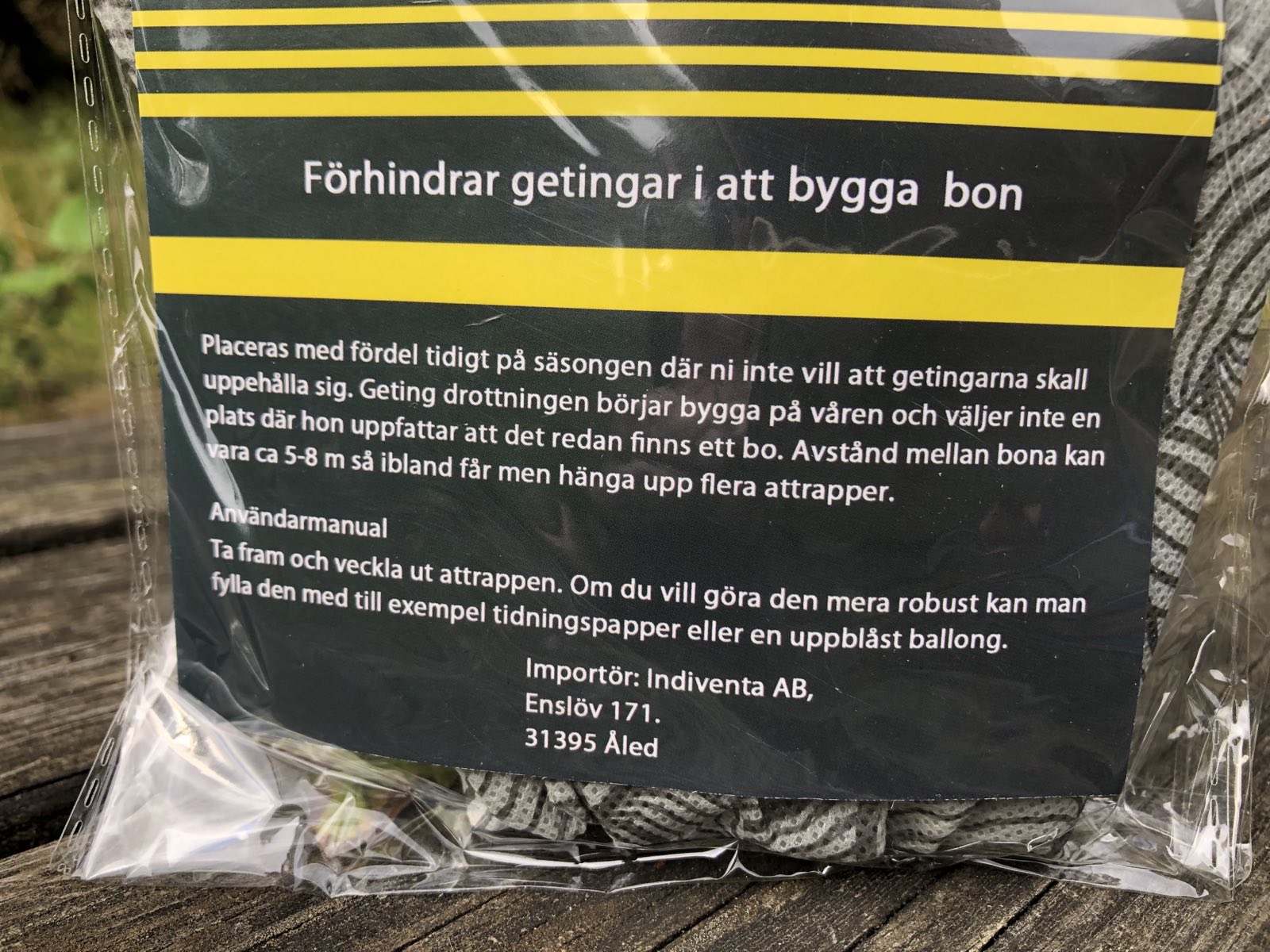 Placeras med fördel tidigt på säsongen där ni inte vill att getingarna skall uppehålla sig. Getingdrottningen börjar bygga på våren och väljer inte en plats där det redan finns ett bo. Avstånd mellan bona kan vara ca 5-8 m så ibland får men hänga upp flera attrapper.