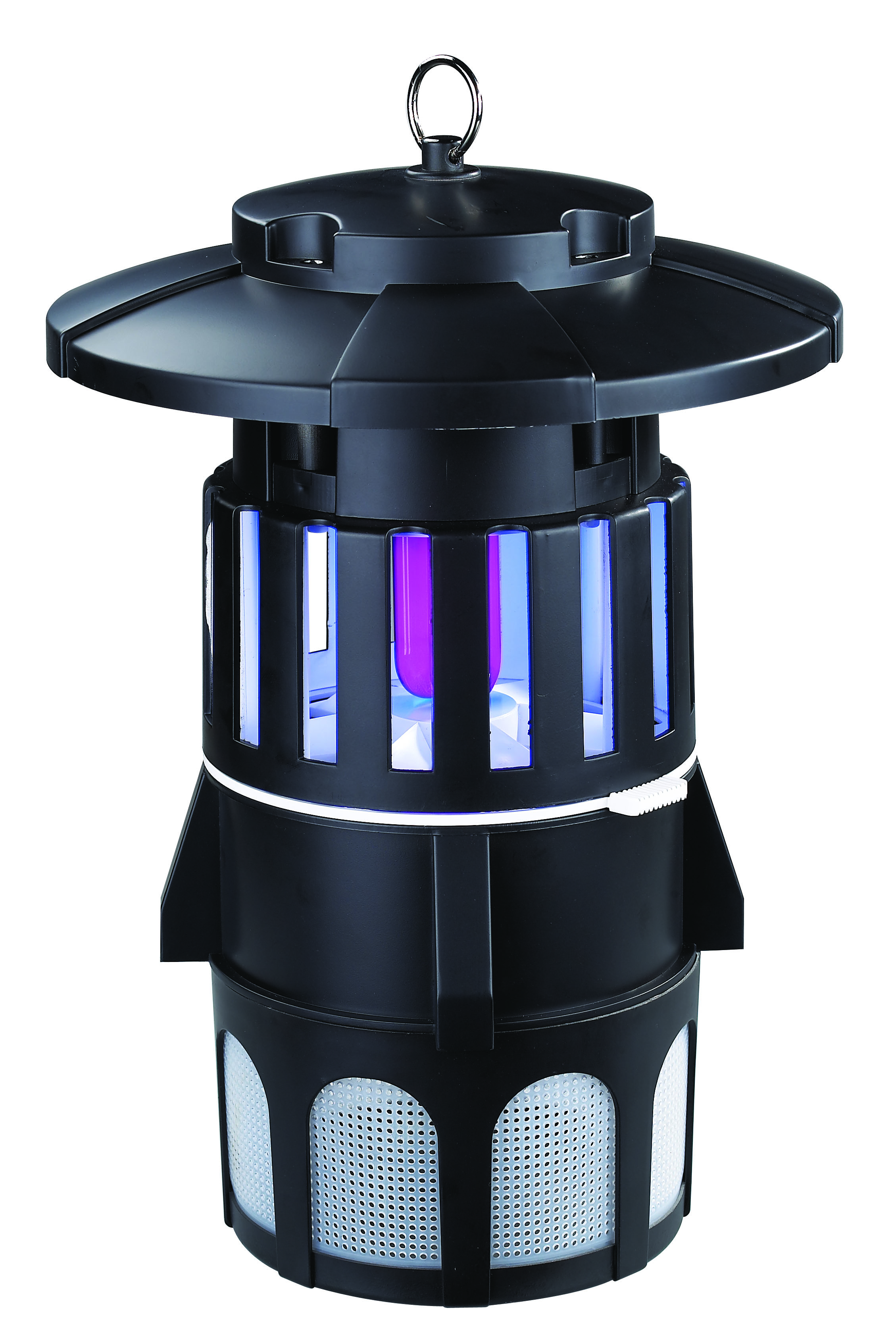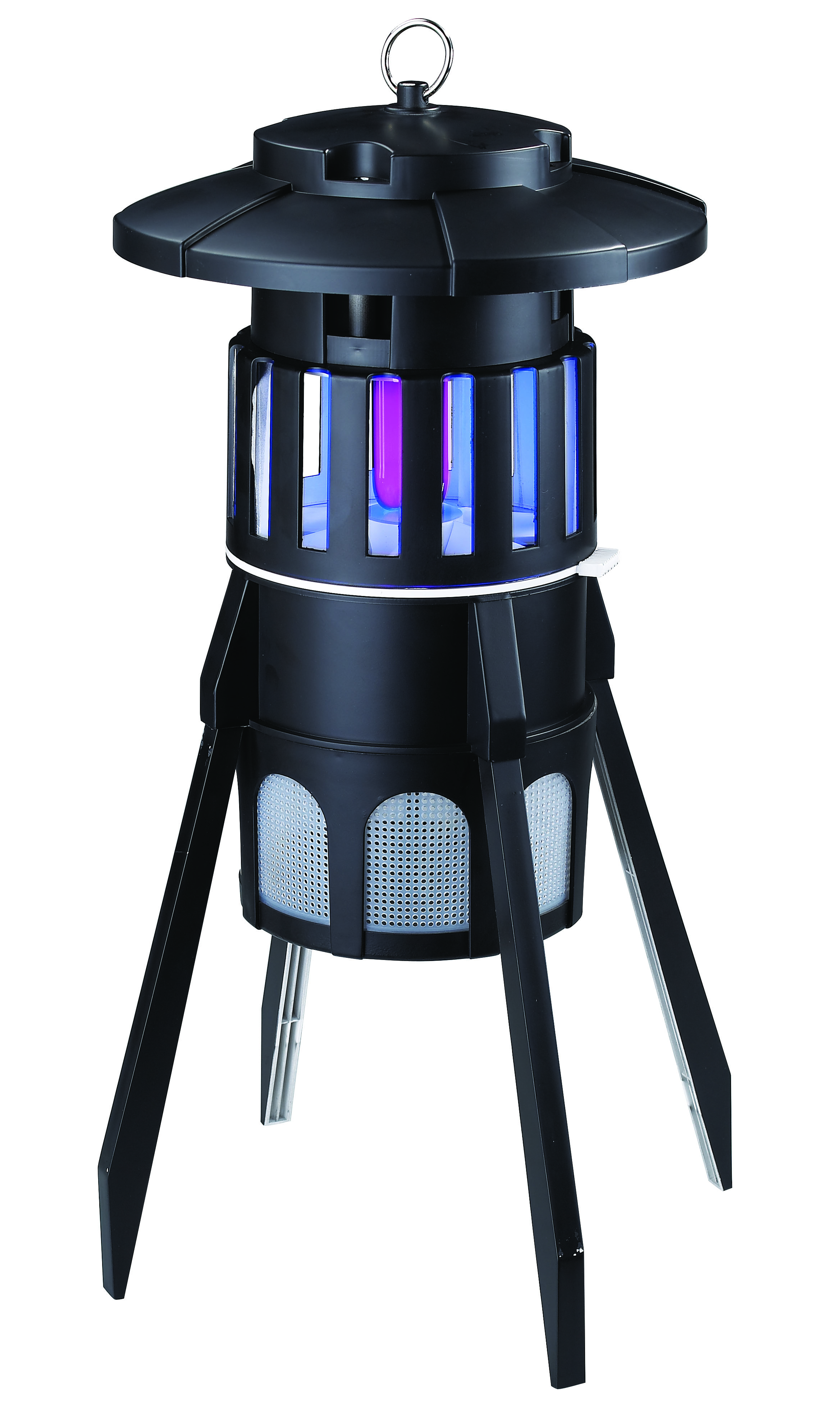 Denna insektsfångare fångar flygande insekter och myggor på ett säkert och miljövänligt sätt. UV-lampan attraherar insekterna och den starkt sugande fläkten drar ner dem i den undre sektionen. När de är fångade kommer de att dö av uttorkning utan användning av kemikalier eller gifter. Tyst, energisparande och säker