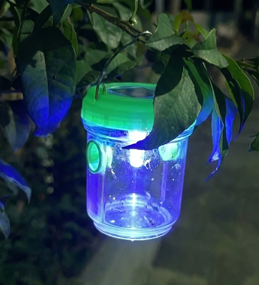 Lampan lyser i skymning och mörker och drar till sig och fångar insekter, knott, mygg och flugor. Lampan tänds automatiskt på kvällen.