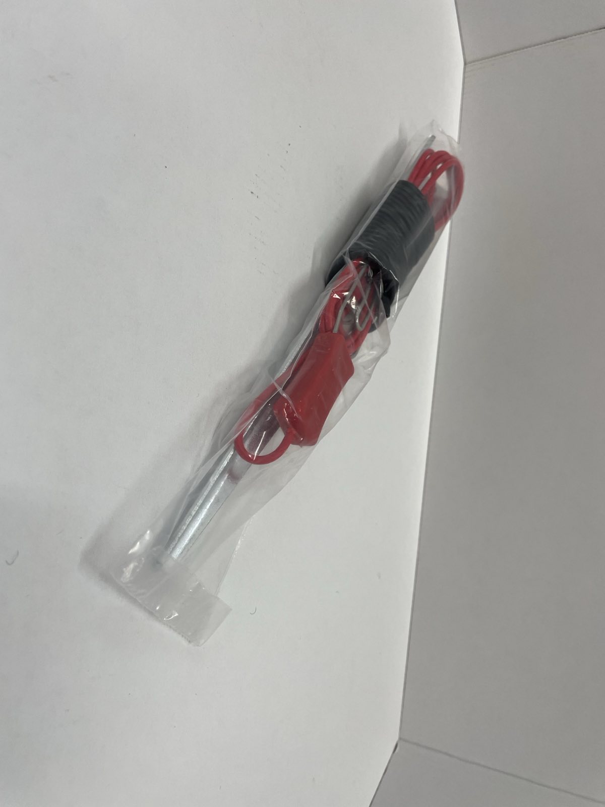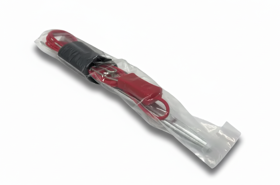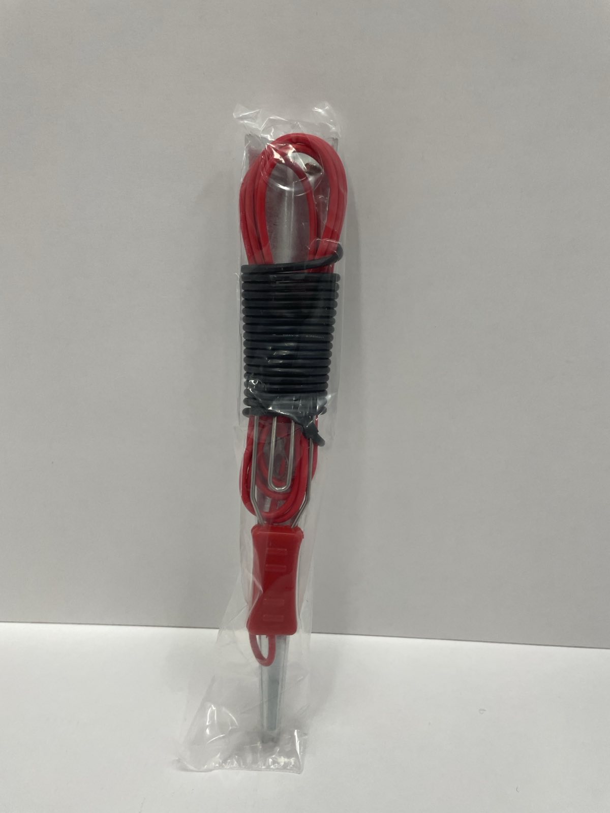 Jordspettet skall installers som bilden nedan visar. Om man behöver använda mer än ett jordspett behövs endast den svarta ledningen för att koppla ihop två jordspett då skall den röda ledningen avlägsnas. Lämpligt är att placera jordspettet i fuktig matjord. Vi råder våra kunder att köpa ett jordspett/nät.