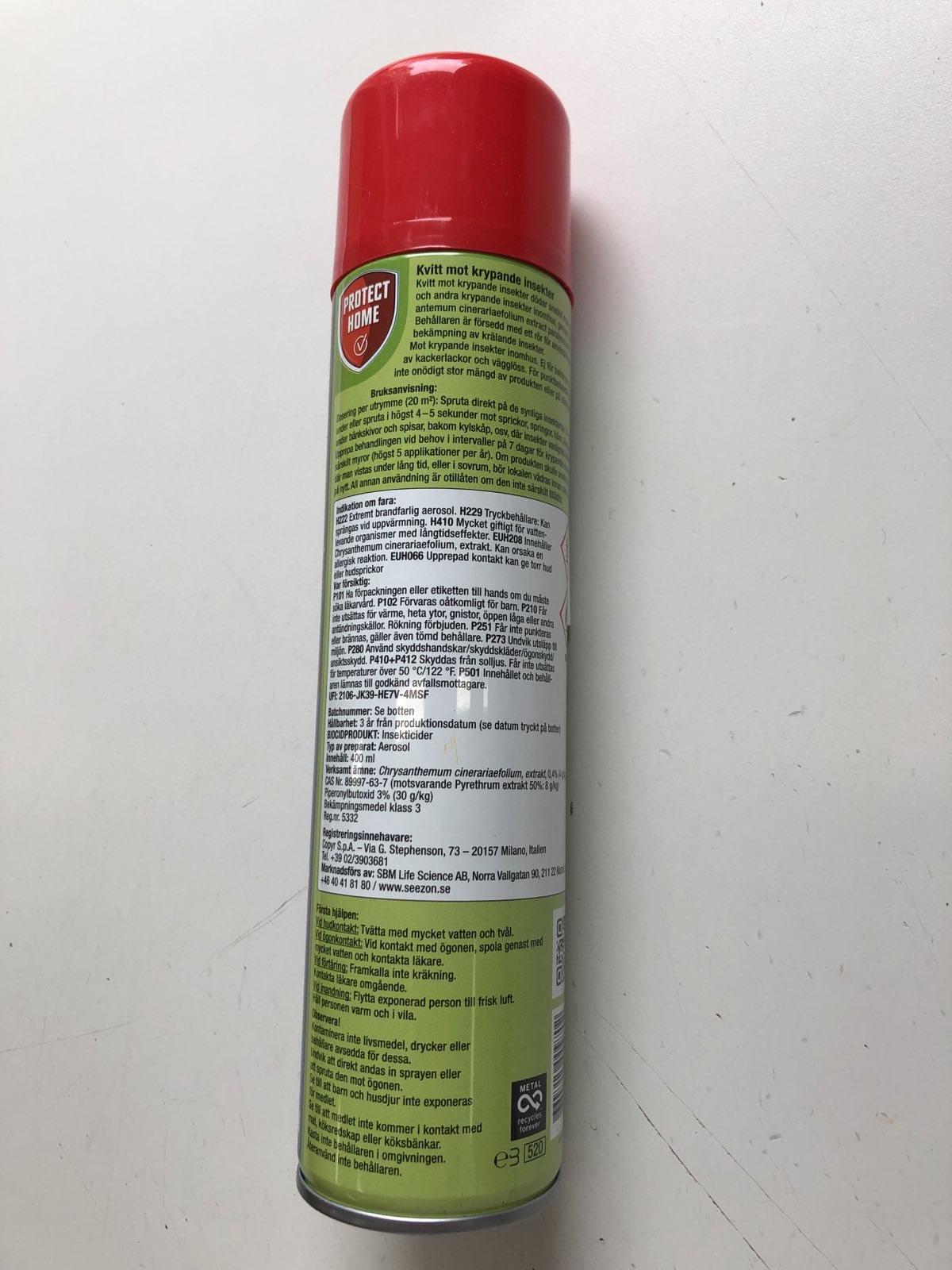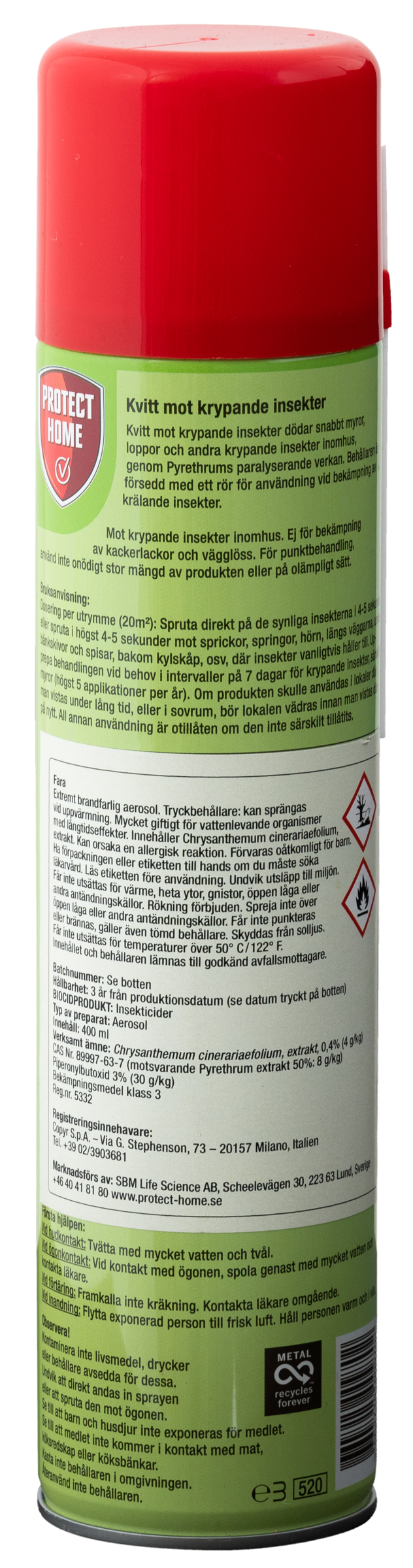 Kvitt mot krypande insekter med Chrysantemum cinerariaefolium extrakt, har en paralyserande verkan och dödar snabbt myror, tvestjärtar, loppor och andra krypande insekter inomhus.