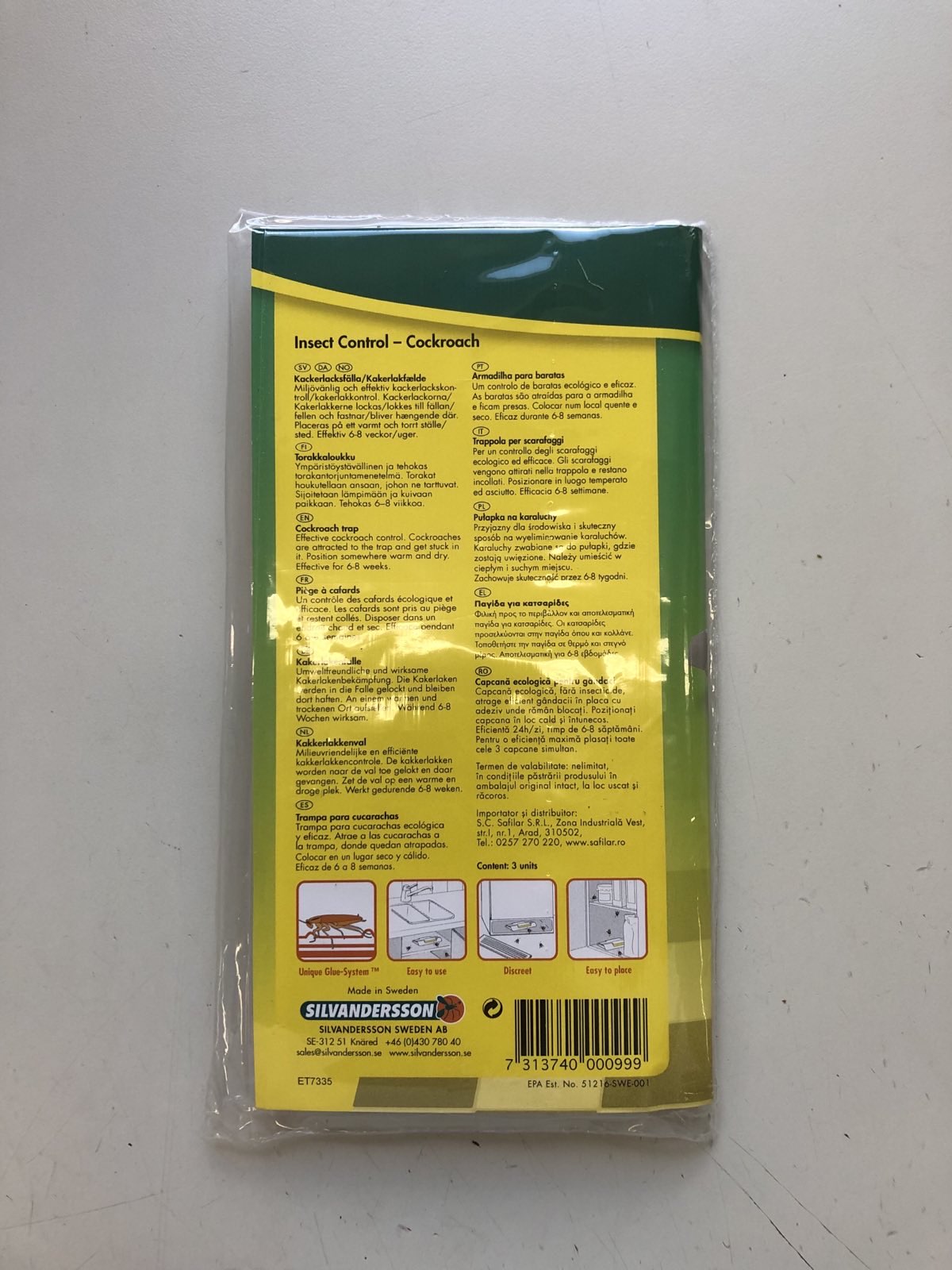 - Kackerlacksfällans lim är effektiv i upp till 8 veckor.