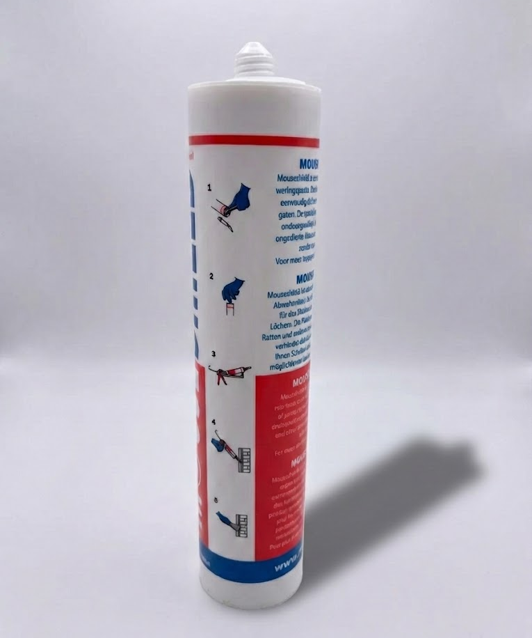 MouseShield har en unik formel, der gør det særdeles effektivt mod mus og rotter. Normale fugemasser kan nemt gennemgnaves, da de er bløde, men stadig hårde nok til at slibe tænderne på.