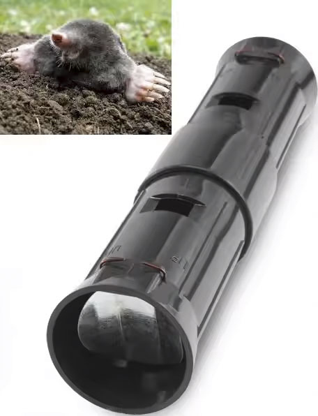 - Städa de 2 utgångarna av fällan. Om det finns jord på fällans utgångar kan det förhindra att fällan stängs korrekt så mullvaden kan ta sig ut.