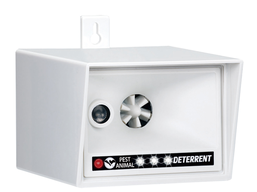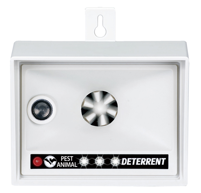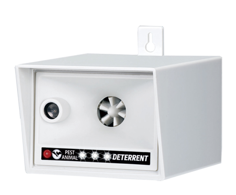 Skrämman har både blinkande ljus och ultraljudsvågor vilket ger trippelskrämsel effekt.