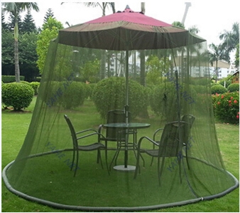 Svart myggnät som passar över parasollet. 2.6 m diameter, 2,75 m höjd.