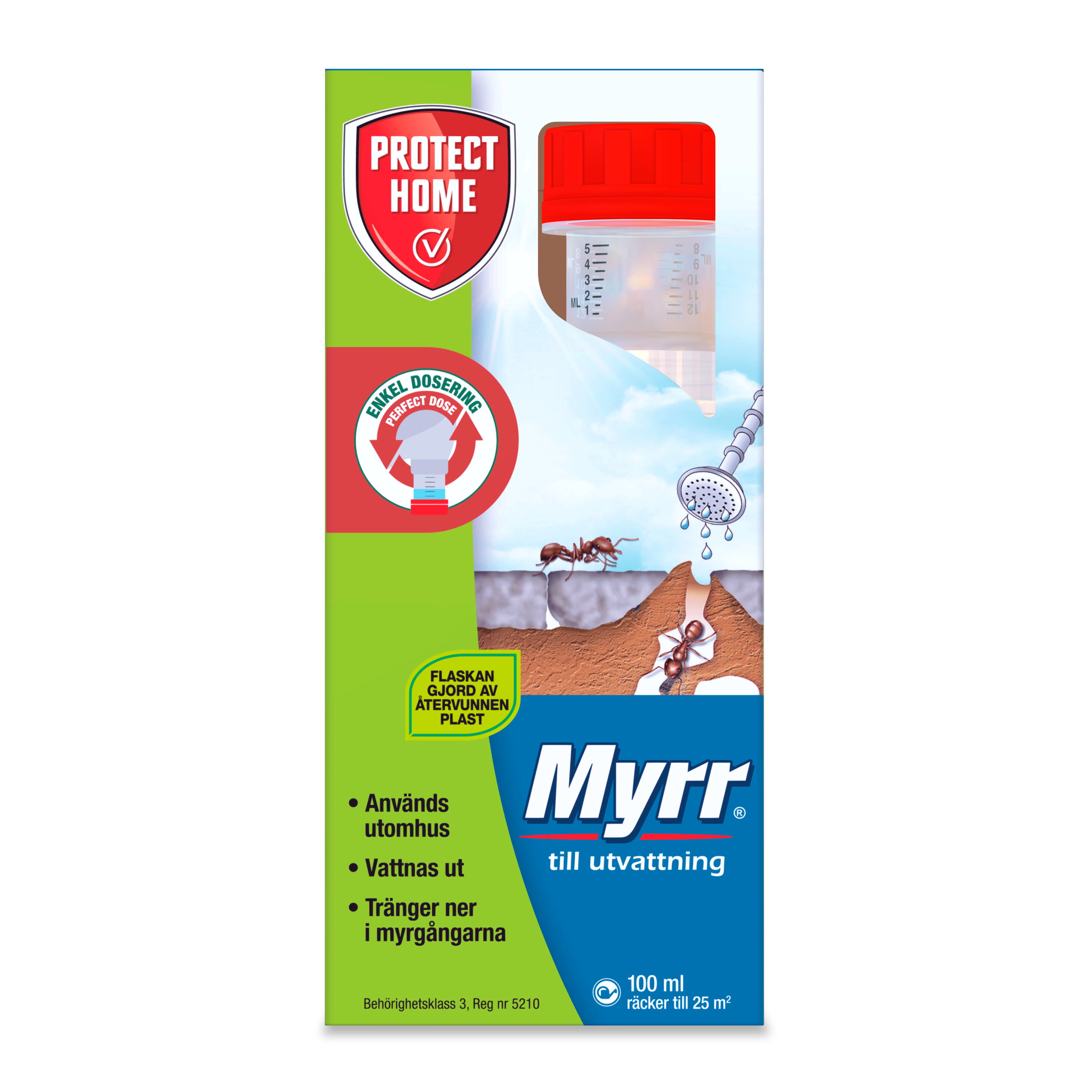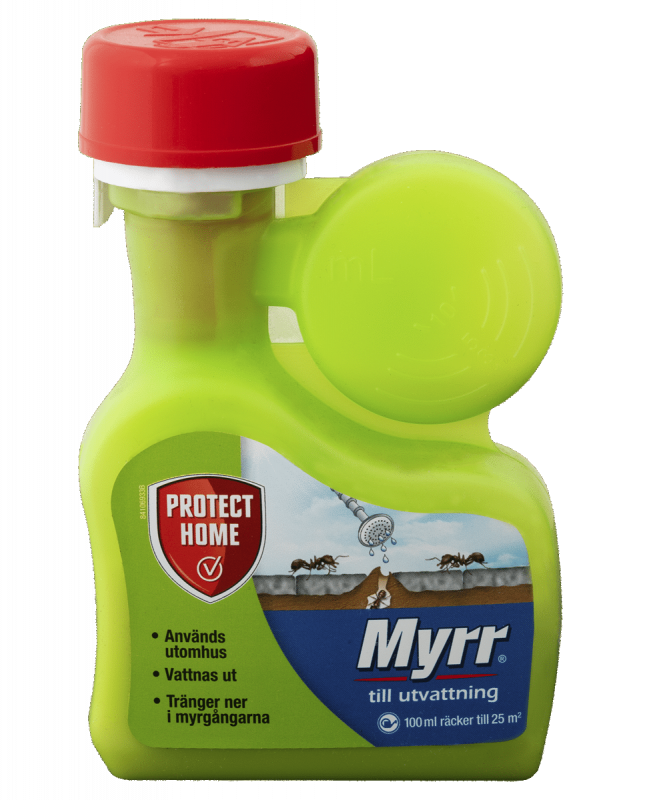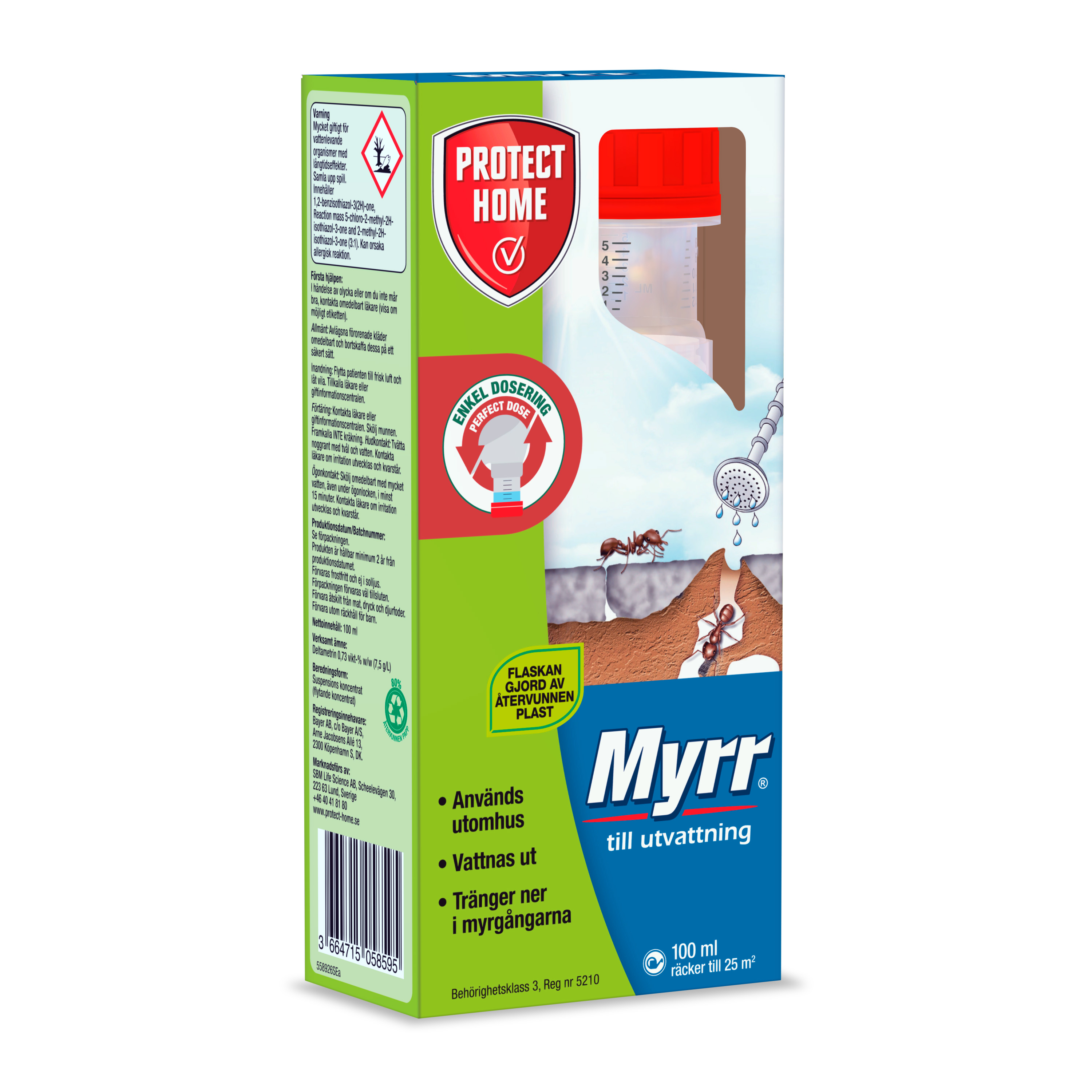 Under sommarhalvåret vill man gärna spendera så mycket tid som möjligt på uteplatsen i trädgården. Något man sällan vill är spendera tiden mitt i en myrinvasion och denna produkt hjälper dig att få stopp på myror som samlas i nära anslutning till din bostad. Med Myrr till utvattning kommer du åt även där du inte ser myrorna längre. Lös gåtan med ett gediget detektivarbete där du följer efter myrorna för att hitta ingångar och utgångar till boet. Häll försiktigt i Myrrs långtidsverkande myrmedel som du har spätt ut med vatten och luta dig sedan tillbaka. Om du inte lyckas utrota myrorna med en gång kan du tålmodigt vänta på att bekämpningen sprids genom att myrorna får det på sig när de går in och ut från gångarna.
