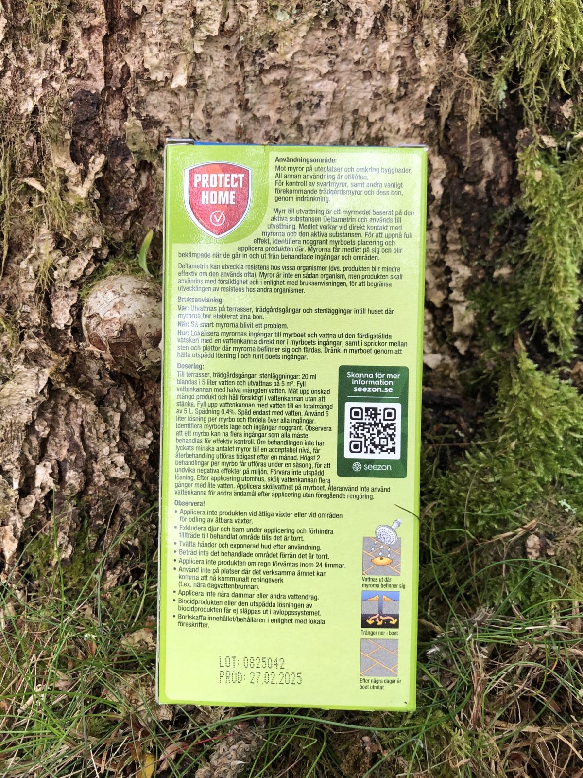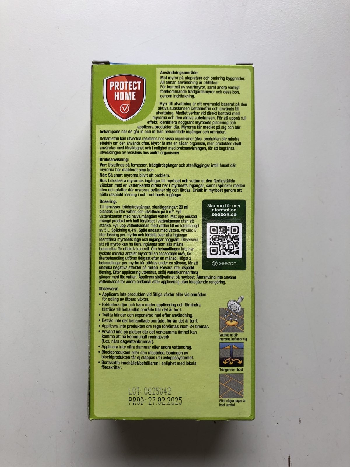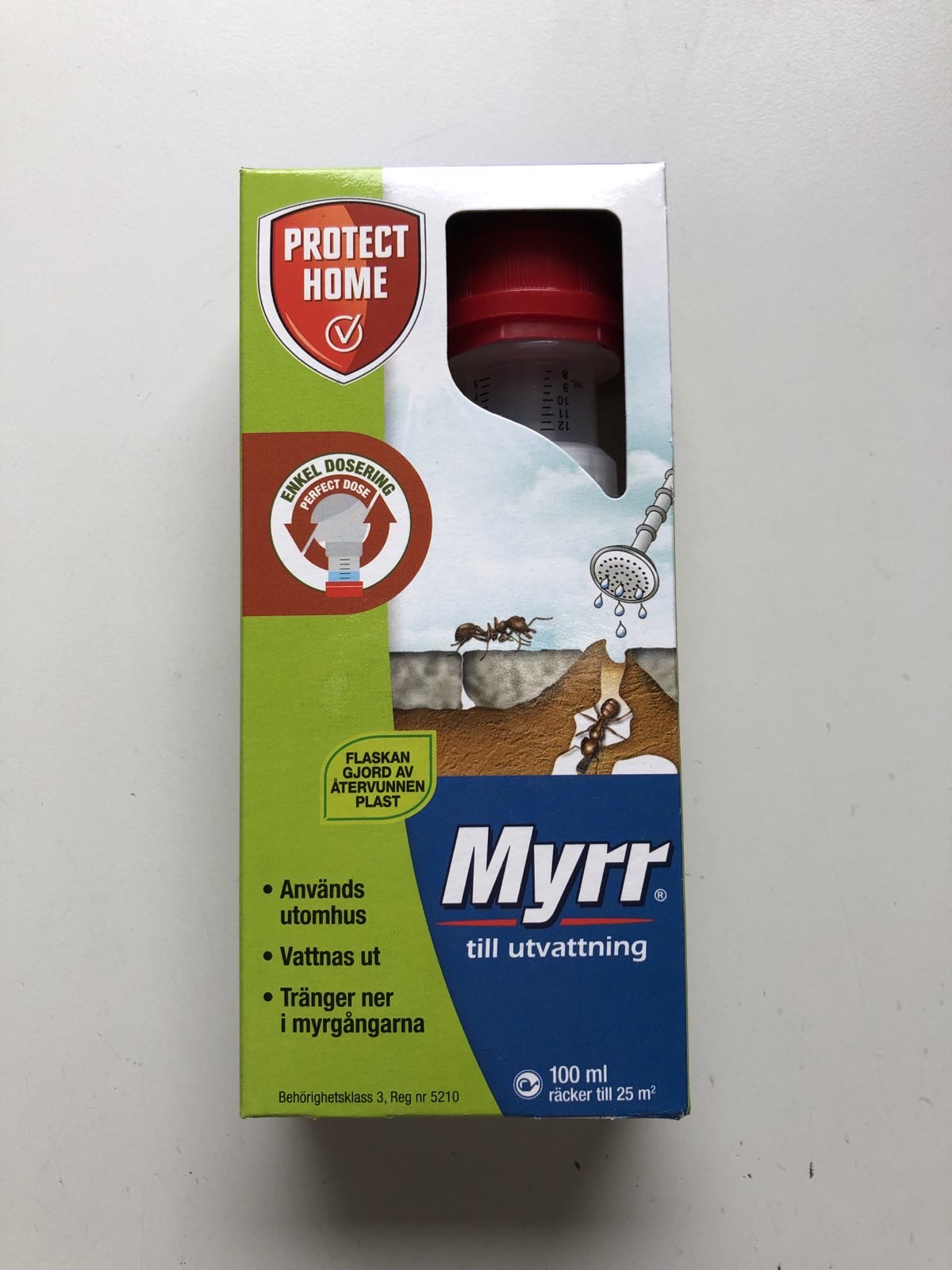 Under sommarhalvåret vill man gärna spendera så mycket tid som möjligt på uteplatsen i trädgården. Något man sällan vill är spendera tiden mitt i en myrinvasion och denna produkt hjälper dig att få stopp på myror som samlas i nära anslutning till din bostad. Med Myrr till utvattning kommer du åt även där du inte ser myrorna längre. Lös gåtan med ett gediget detektivarbete där du följer efter myrorna för att hitta ingångar och utgångar till boet. Häll försiktigt i Myrrs långtidsverkande myrmedel som du har spätt ut med vatten och luta dig sedan tillbaka. Om du inte lyckas utrota myrorna med en gång kan du tålmodigt vänta på att bekämpningen sprids genom att myrorna får det på sig när de går in och ut från gångarna.