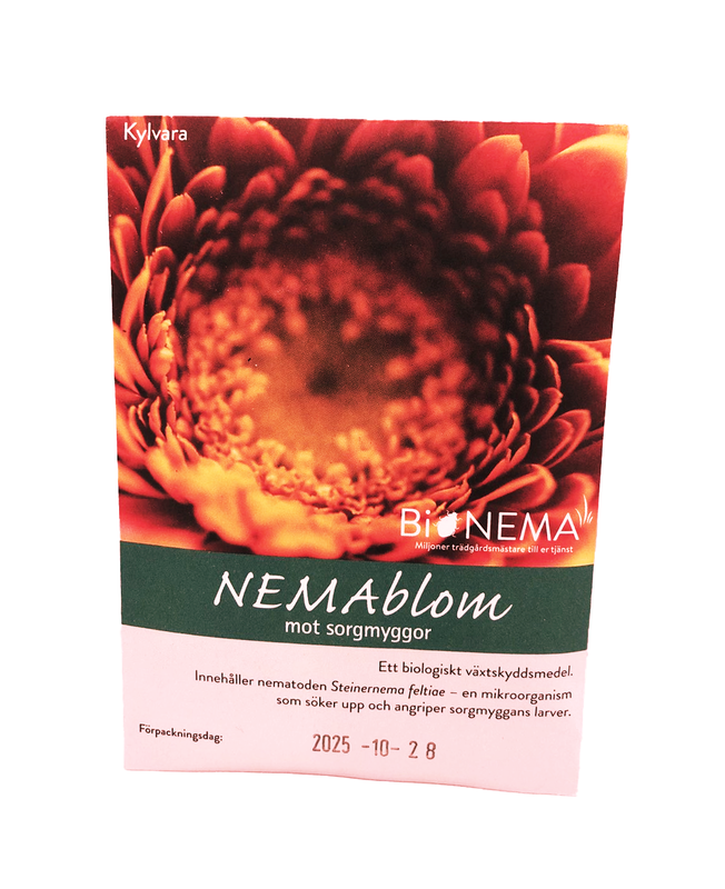 1 förp. Nemablom räcker till ca 20 blomkrukor eller 2 kvm jordyta