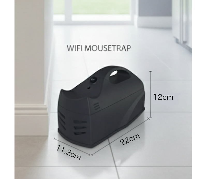 Elektrisk musefælde med WiFi, som kan tilsluttes en app på din telefon. Giver besked, når der er fangst, eller når batterierne er ved at løbe tør.