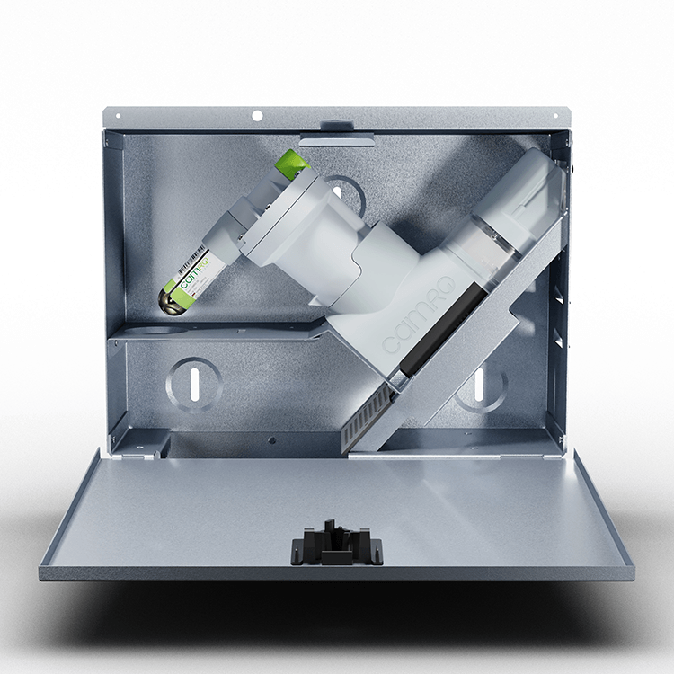 Monterad i låsbar säkerhetsbox så inga barn kommer åt bli klämda.