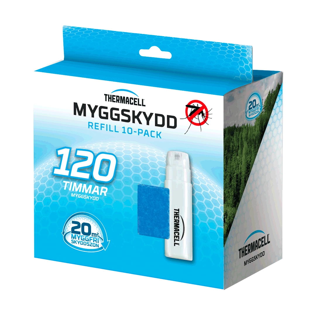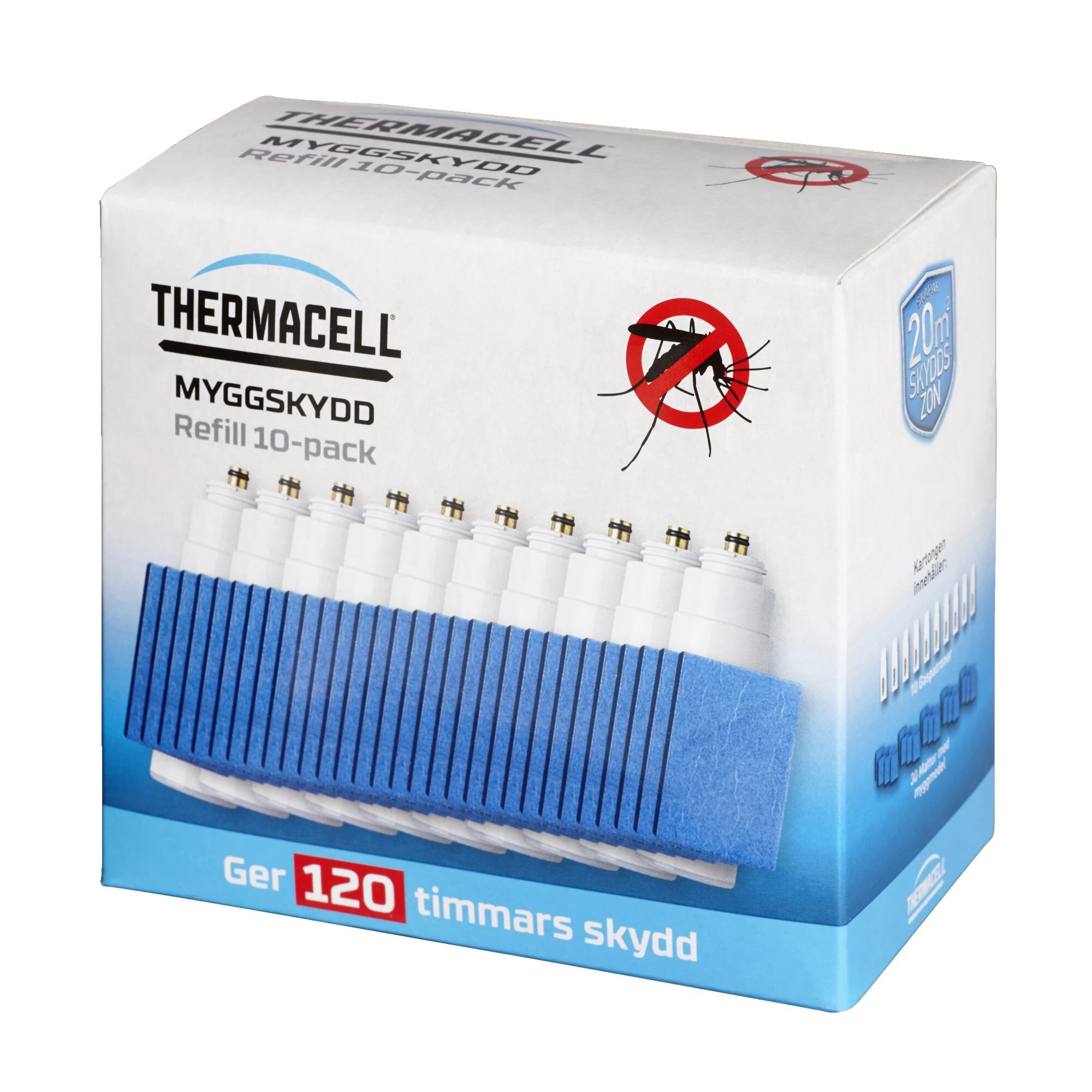 ThermaCELL® Refill 10-pak er et tilbehør, der passer til alle ThermaCELL® myggeskærme uanset model. Refill 10-pak indeholder 10 sæt refills, hvilket svarer til i alt 120 timers effektiv brug. Refillen er selve myggeskærmen, som du løbende supplerer produktet med. Sammen med apparatet skabes en beskyttelseszone på ca. 20 m².
