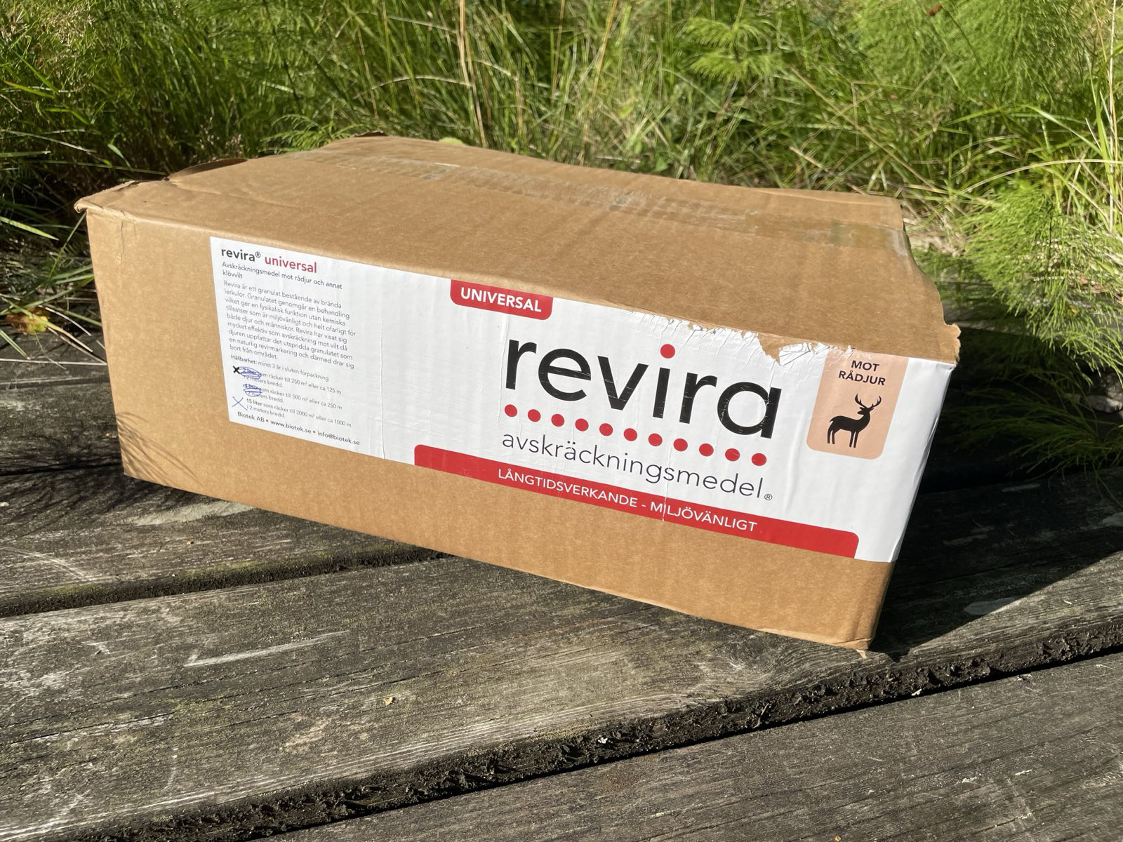 Revira viltskydd är effektivt, lätt att sprida, luktfritt, drygt, ekonomiskt, ofarligt och miljövänligt, och en behandling varar upp till sex månader. Levereras i kartong och inte i plastbehållare.