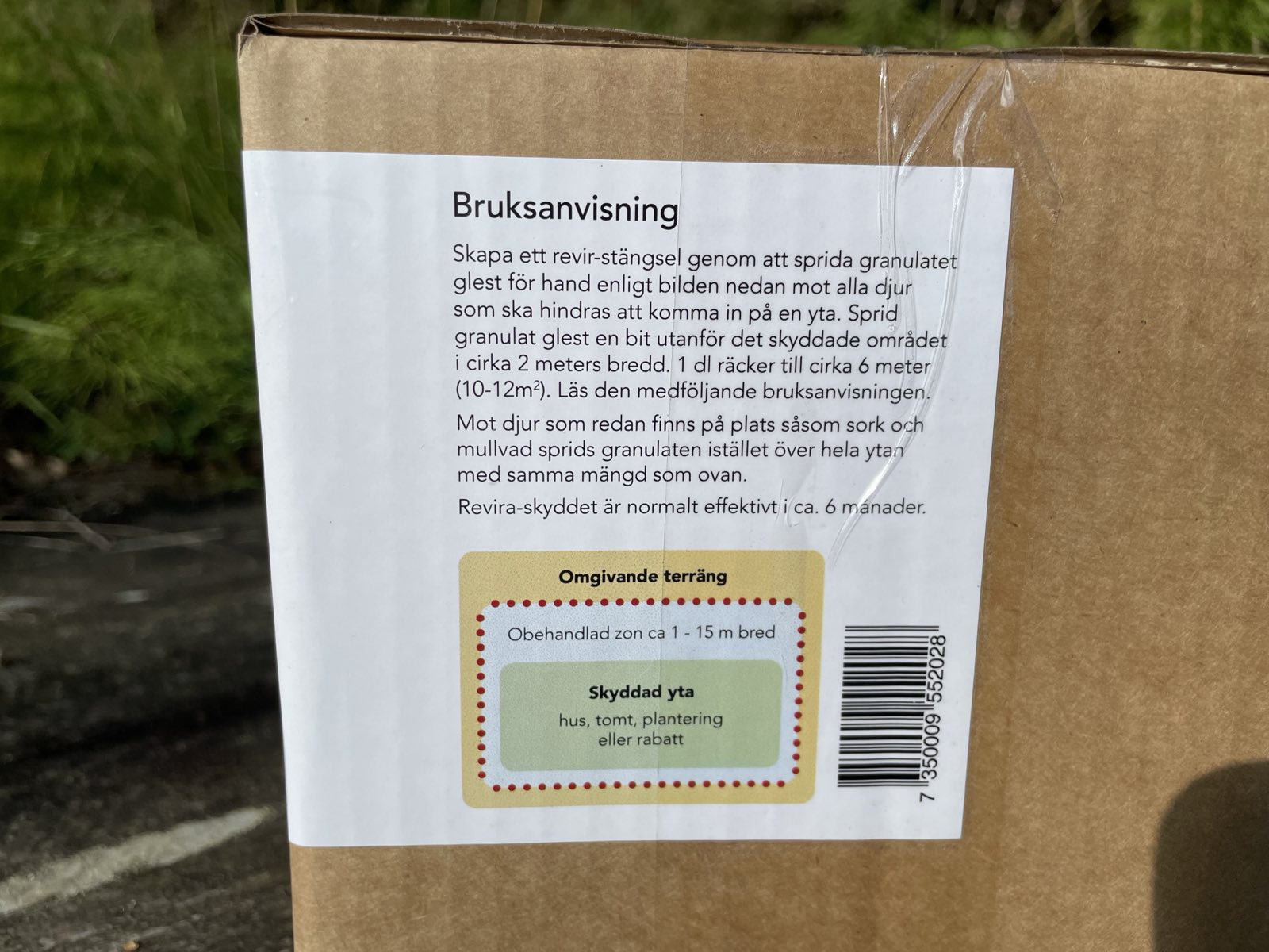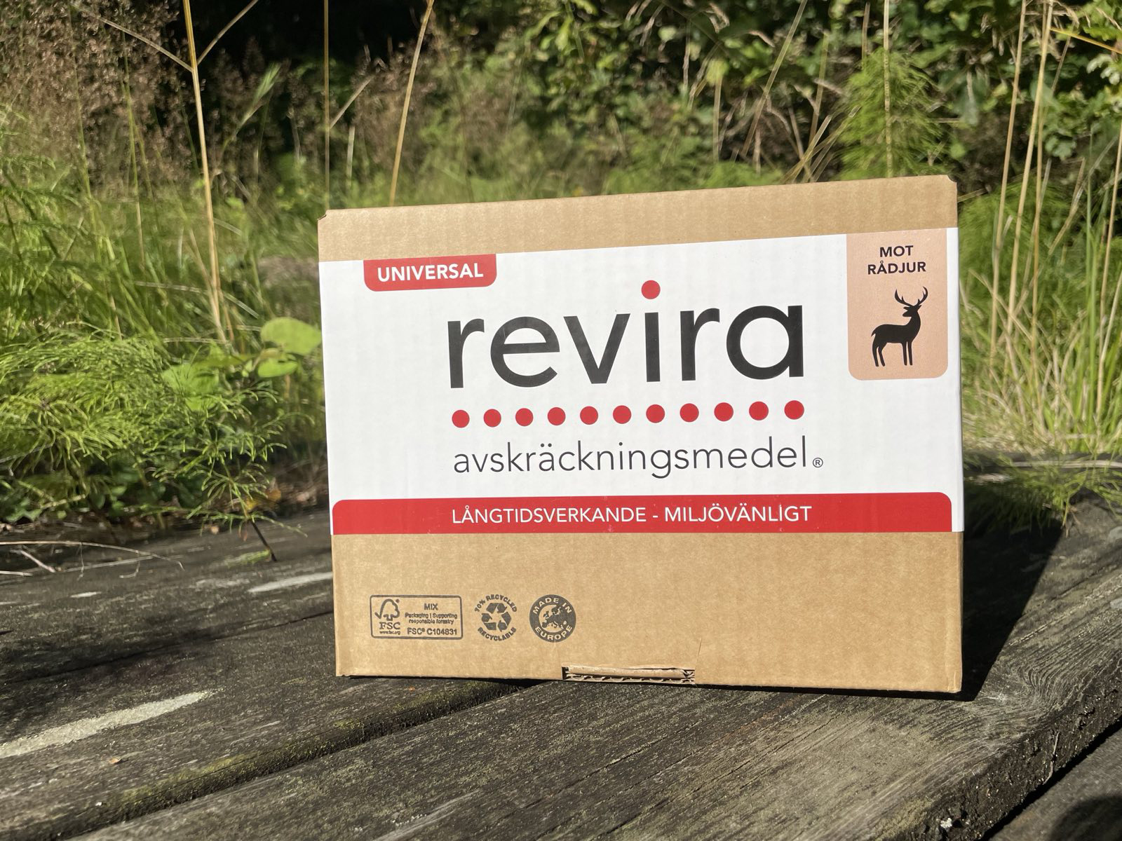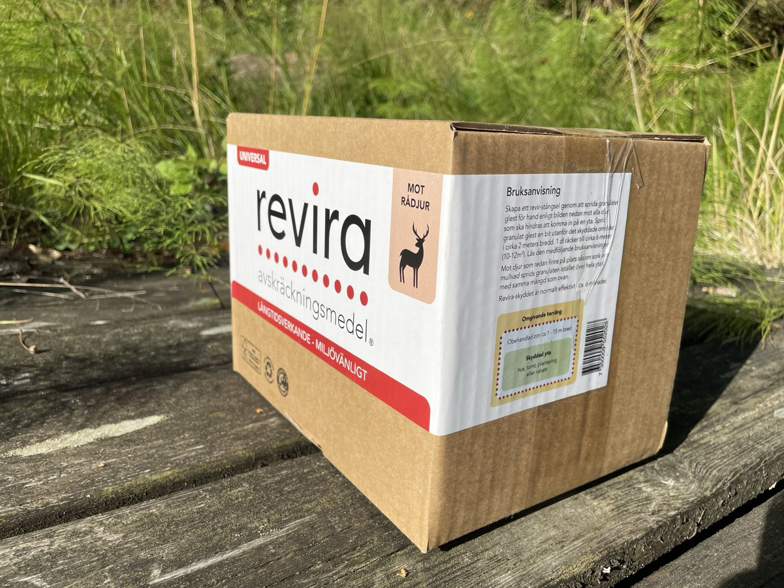 Revira viltskydd är effektivt, lätt att sprida, luktfritt, drygt, ekonomiskt, ofarligt, miljövänligt och en behandling räcker upp till sex månader. Lev i wellkartong och inte plasthink. 4 liter räcker till 500 kvadratmeter eller ca 250m i 2 meters bredd.