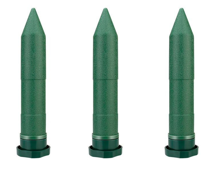 - Välj den plats som är värst drabbad av mullvad eller sork och placera skrämman i marken. OBS! Hamra eller slå aldrig ner produkten. Gör ett hål med spett eller liknande så att det går att trycka ner produkten med god kontakt med jordsidan. Detta ger bästa resultat av ljud och vibrationsöverföringen.