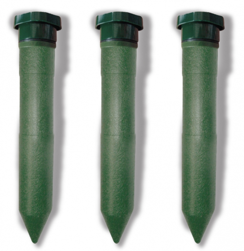 - Välj den plats som är värst drabbad av mullvad eller sork och placera skrämman i marken. OBS! Hamra eller slå aldrig ner produkten. Gör ett hål med spett eller liknande så att det går att trycka ner produkten med god kontakt med jordsidan. Detta ger bästa resultat av ljud och vibrationsöverföringen.