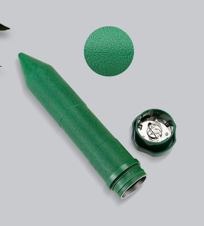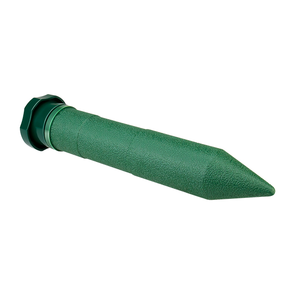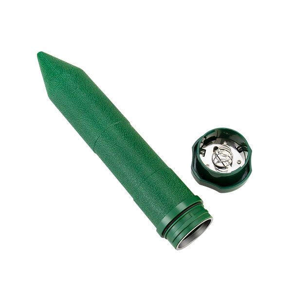 - Välj den plats som är värst drabbad av mullvad eller sork och placera skrämman i marken. OBS! Hamra eller slå aldrig ner produkten. Gör ett hål med spett eller liknande så att det går att trycka ner produkten med god kontakt med jordsidan. Detta ger bästa resultat av ljud och vibrationsöverföringen.