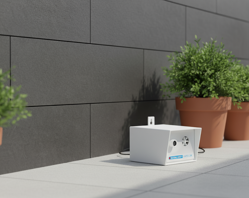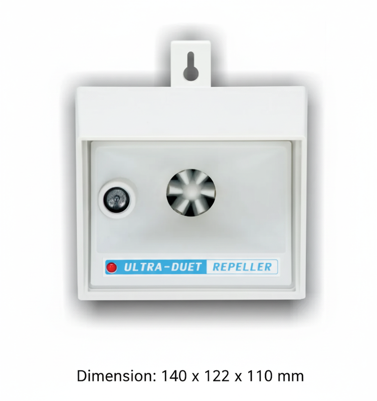 utomhusskrämma med Duo-teknik som tillåter 2 ultraljudsvågor från två olika system att samtidgt avge ultraljud vilket ökar skrämseleffekten.