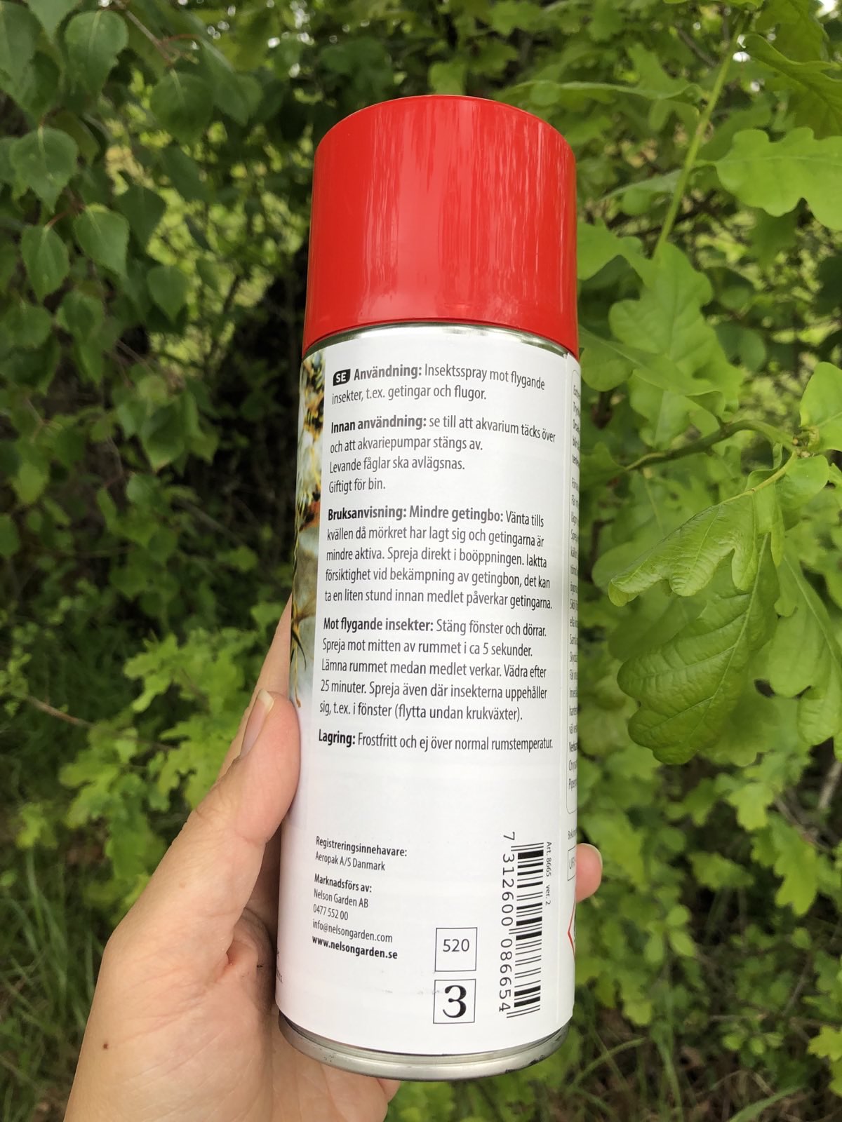 - Insektsspray mot bostadsohyra och förrådsskadeinsekter som t.ex. getingar, flugor och mjölbaggar.