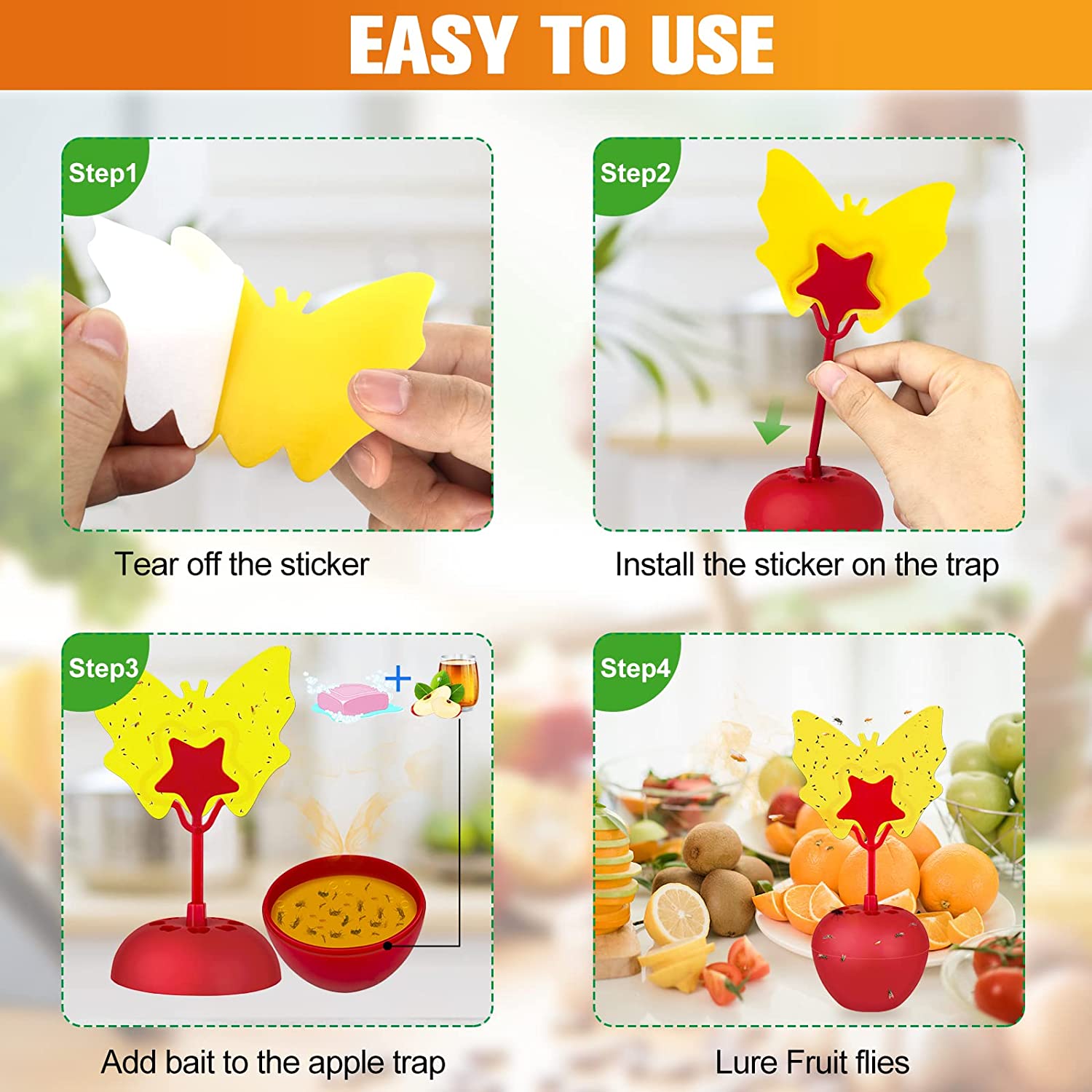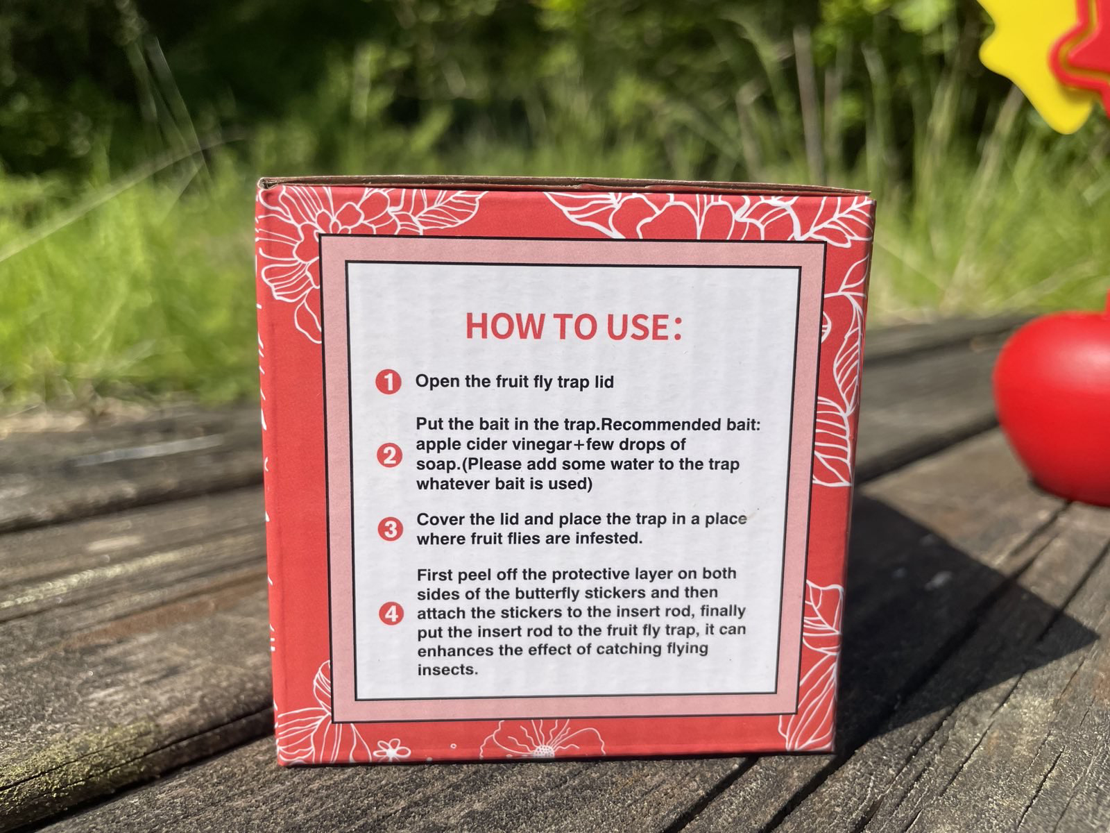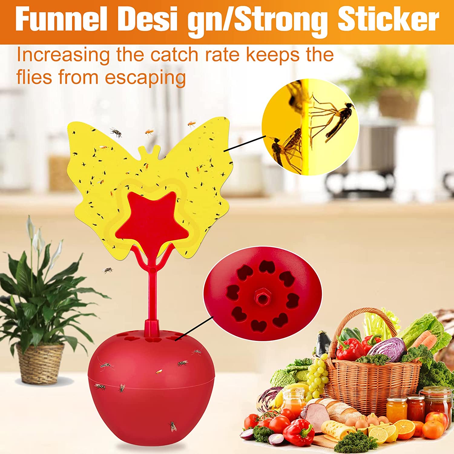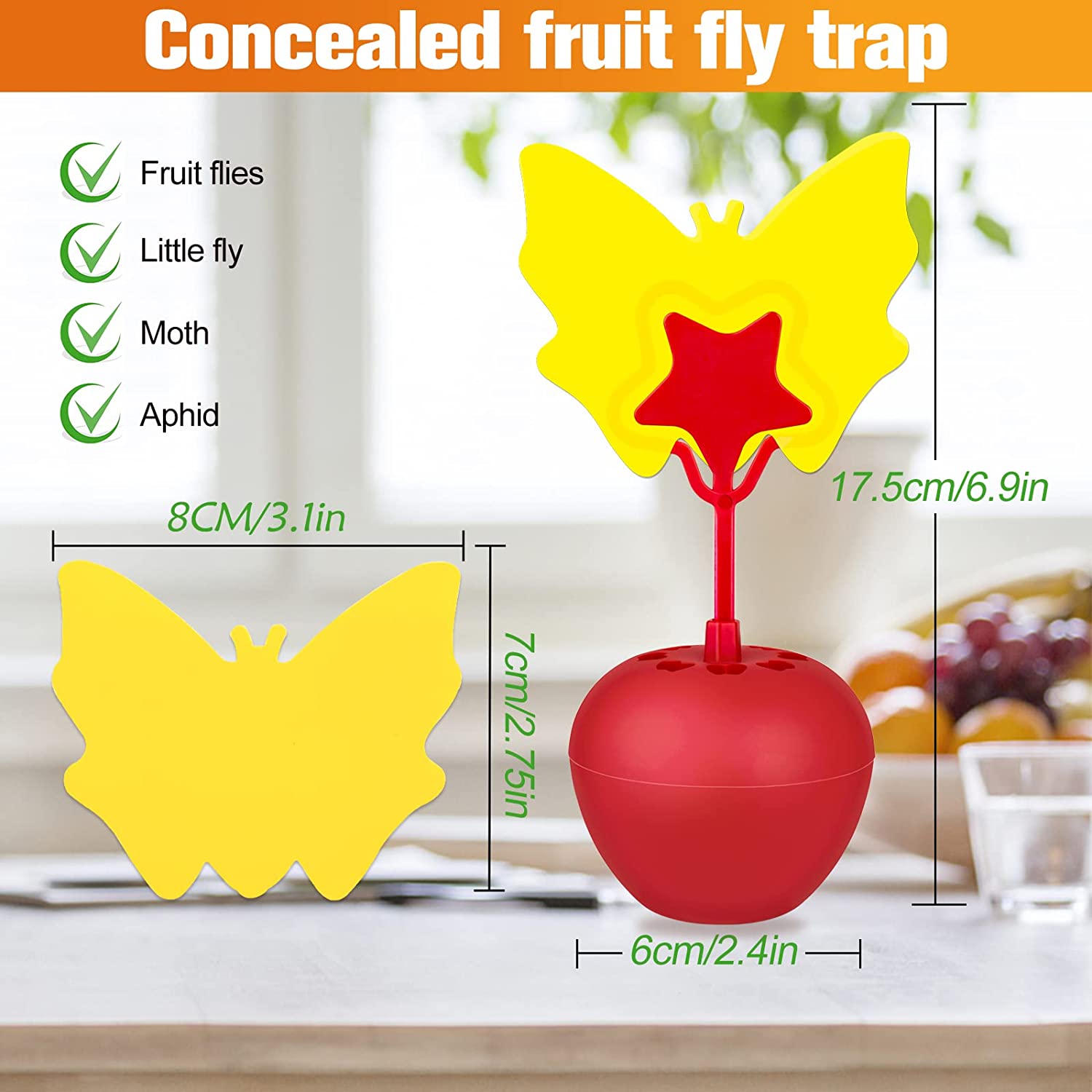 Bekämpa bananflugor och andra irriterande insekter med stil! Denna smarta fälla kombinerar lockbete i flaska med gula klisterfällor i fjärilsform för dubbel effekt. Den röda flaskformen är både funktionell och snygg – perfekt för köksbänken, fönsterbrädan eller växthuset.