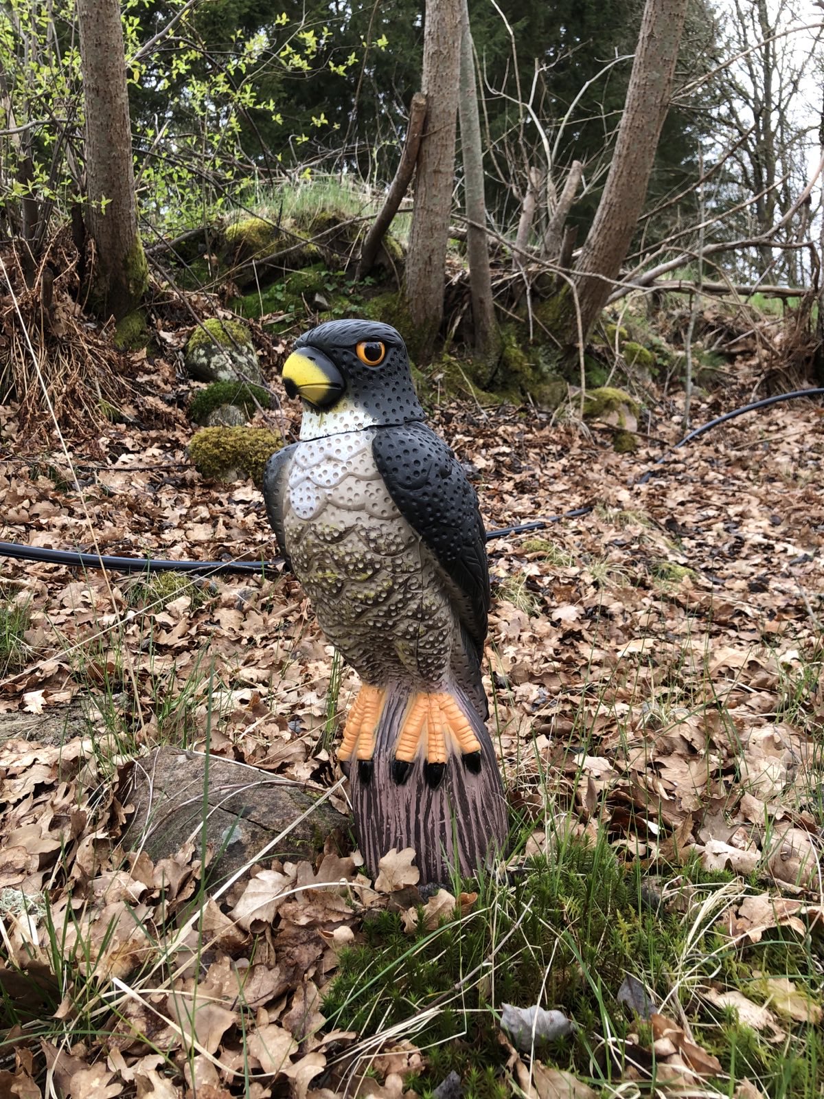 Skap et trygt og rent utemiljø uten fugleskitt og skader på avlinger, biler eller terrasser. Vår naturtro falkefigur med roterende hode kombinerer effektiv avskrekkelse med enkel montering – helt uten kjemikalier eller strøm.