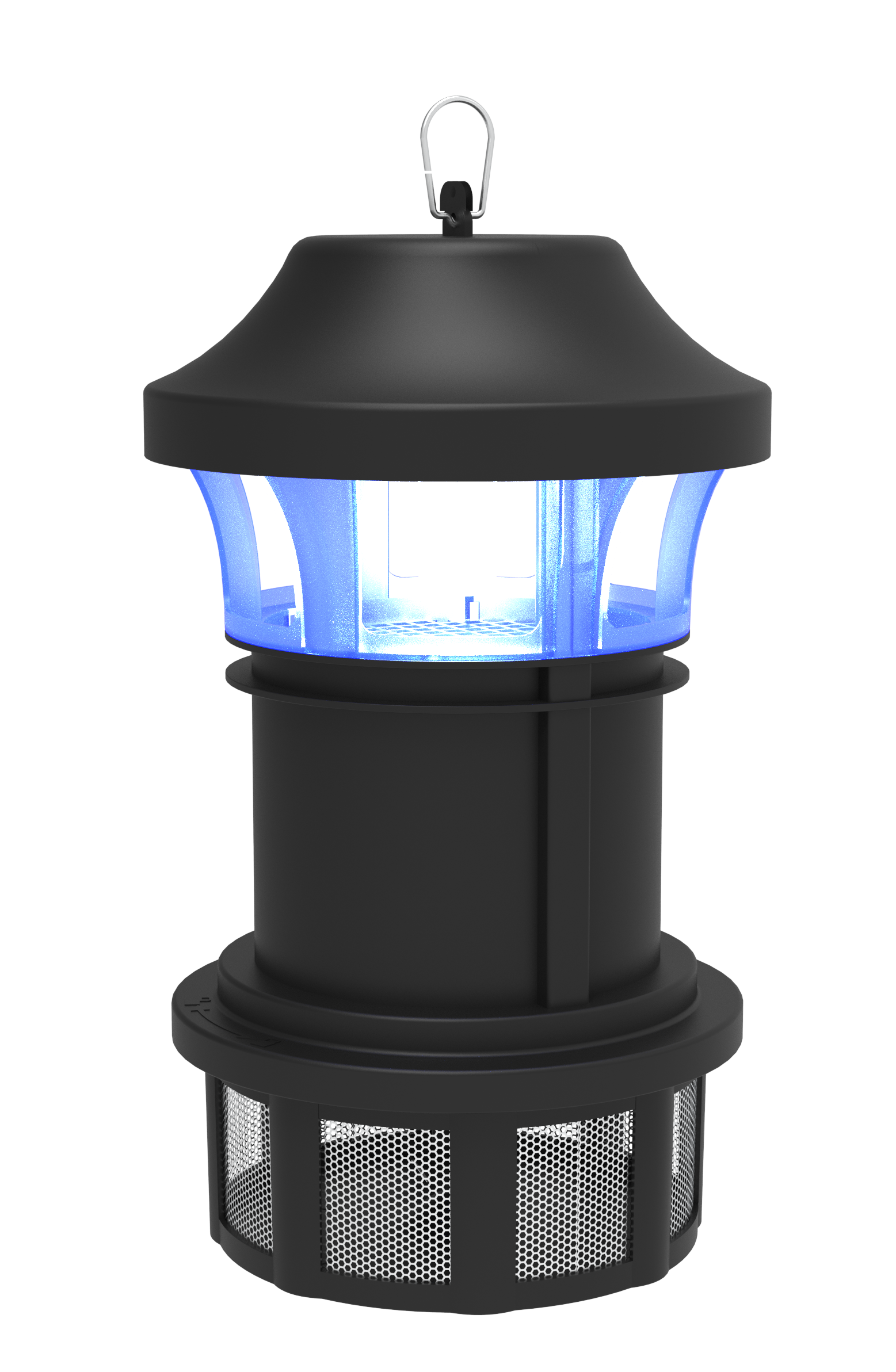 Myggfångaren fångar myggor på ett säkert och miljövänligt sätt. UV-lampan attraherar insekterna och den starkt sugande fläkten drar ner dem i den undre sektionen. När de är fångade kommer de att dö av uttorkning utan användning av kemikalier eller gifter. Tyst, energisparande och säker. Täckyta utan octanol 300m2
