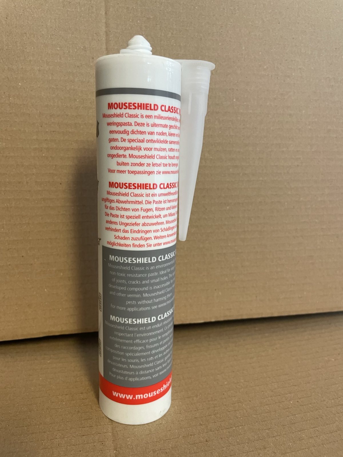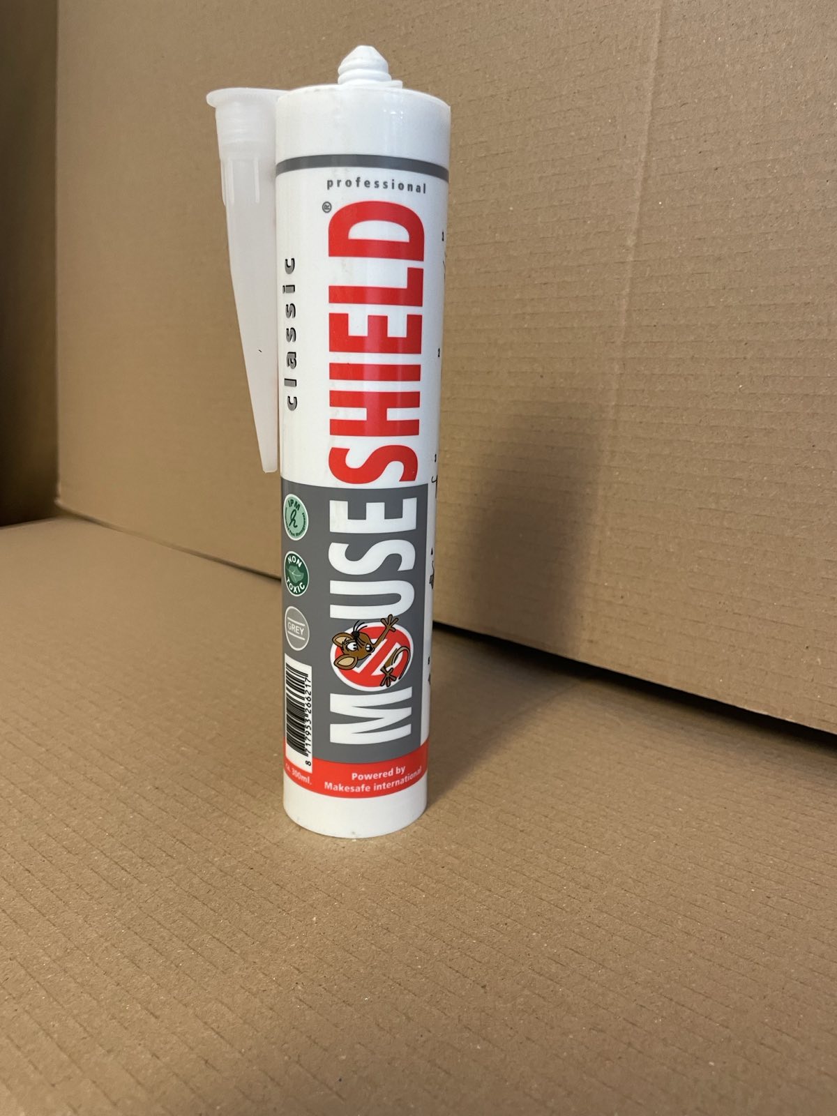 MouseShield har en unik formula som gör den mycket effektiv mot möss och råttor. Vanliga tätningsmedel kan lätt gnagas igenom eftersom de är mjuka men ändå tillräckligt hårda för att vässa tänderna på.
