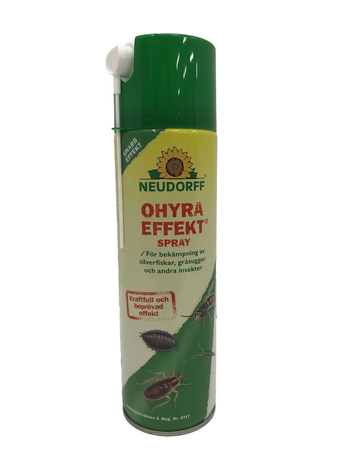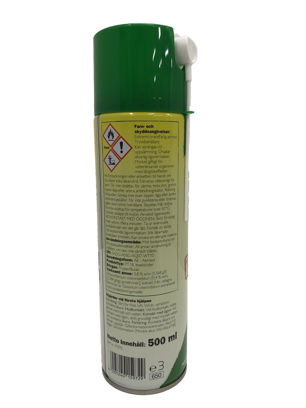 Effektivt og hurtigvirkende mot sølvkre, skrukketroll og andre krypende insekter, for bruk innendørs. Et produkt bestående av pyretrum – en substans utvunnet fra krysantemumblomsten. Sprayflasken har et forlenget spraymunnstykke for enkel tilgang under for eksempel terskler og lister. To ukers langtidseffekt ved innendørs bruk.