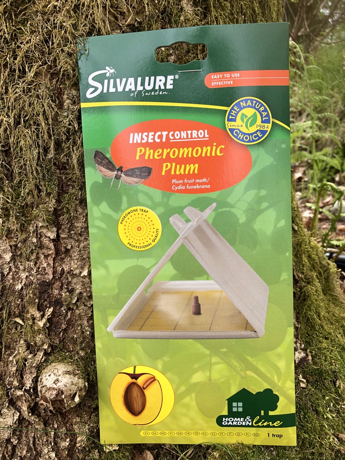 Gör så här: Häng upp eller ställ fällan i trädet strax efter blomningen. Använd en fälla per träd.