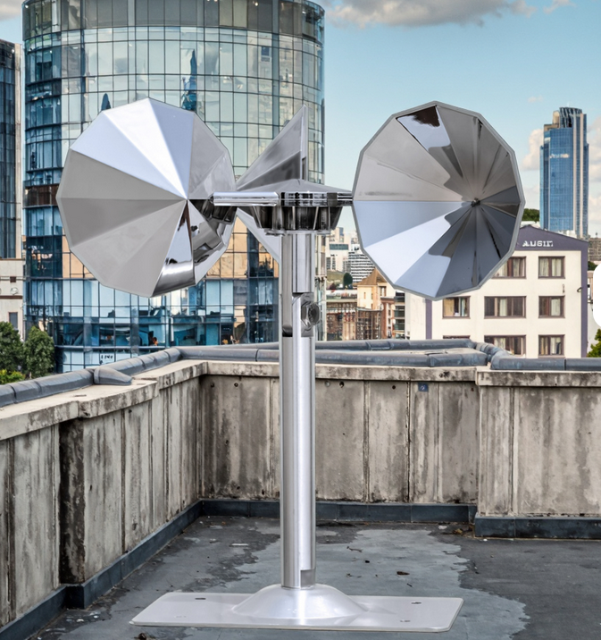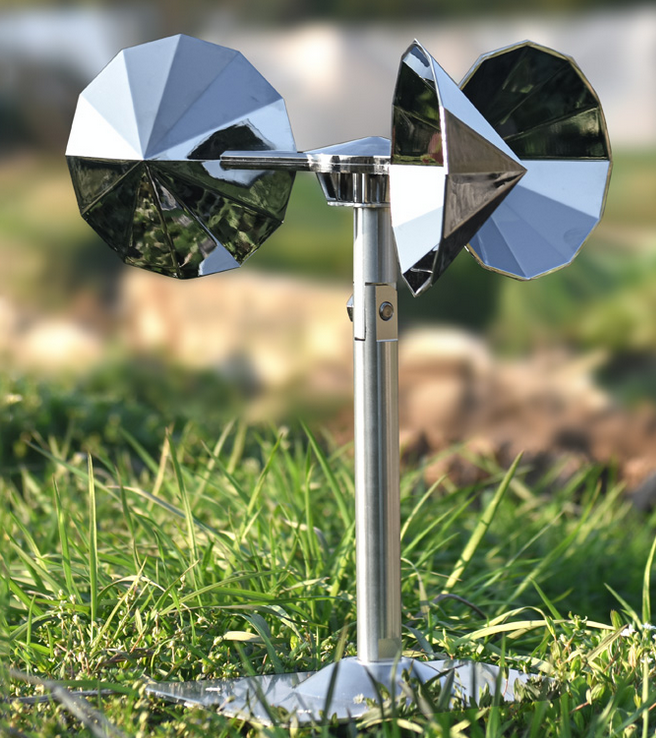 En diskret, vinddriven fågelskrämma som kastar skarpa ljusreflexer i 360° och gör ytan obekväm för duvor, trastar, skator m.fl. Tillverkad i aluminiumlegering för utomhusbruk och byggd för långvarig drift.
