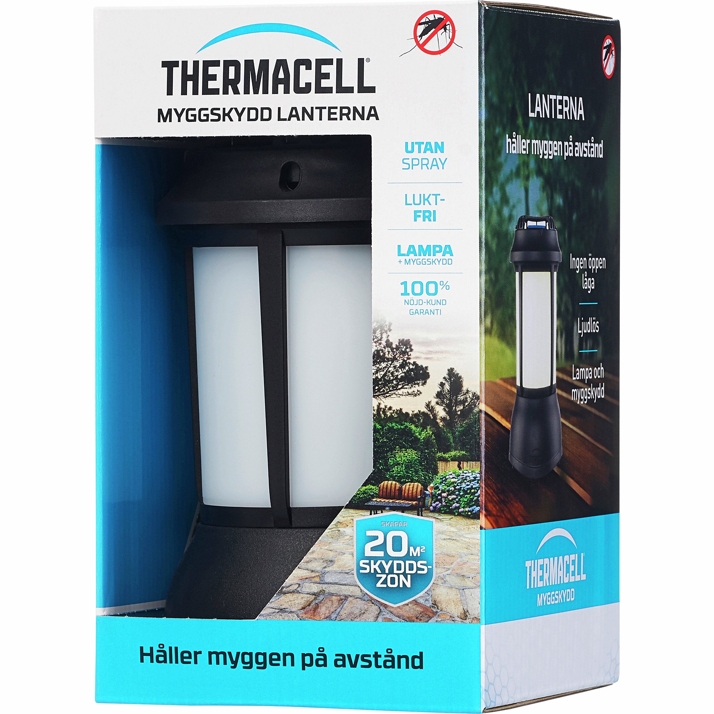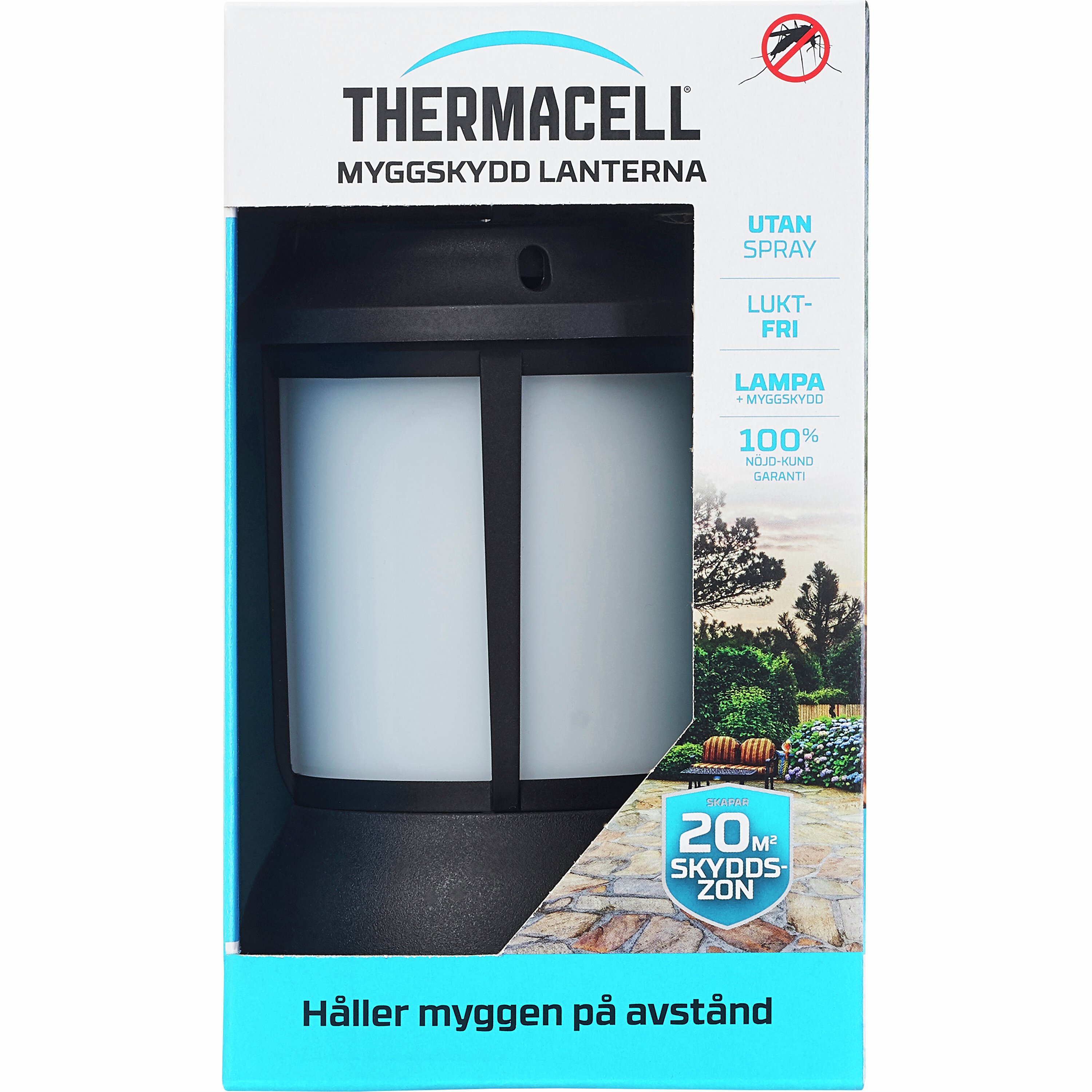 Thermacell Lanterna är ett myggskydd i stilren design som passar perfekt för balkongen, uteplatsen, terrassen och campingplatsen. Utsöndrar ett luktfritt myggmedel som skapar en skyddszon på ca 20m². Levereras med myggmedelsmattor som ger 12 timmars myggskydd. När myggmedelsmattorna är förbrukade byts de enkelt ut mot nya. Se även Thermacell Refill.