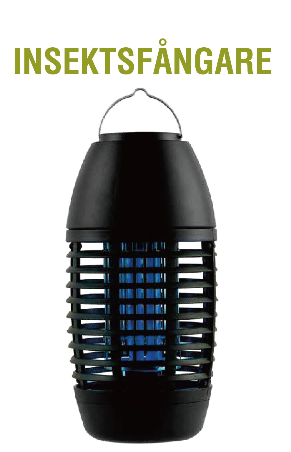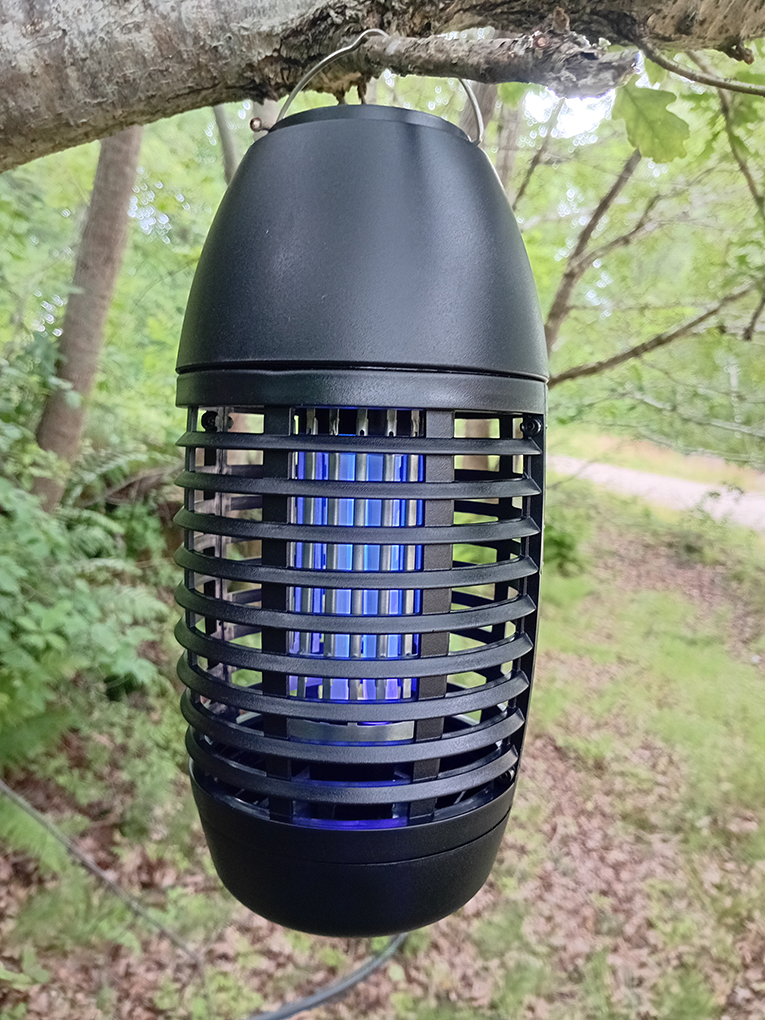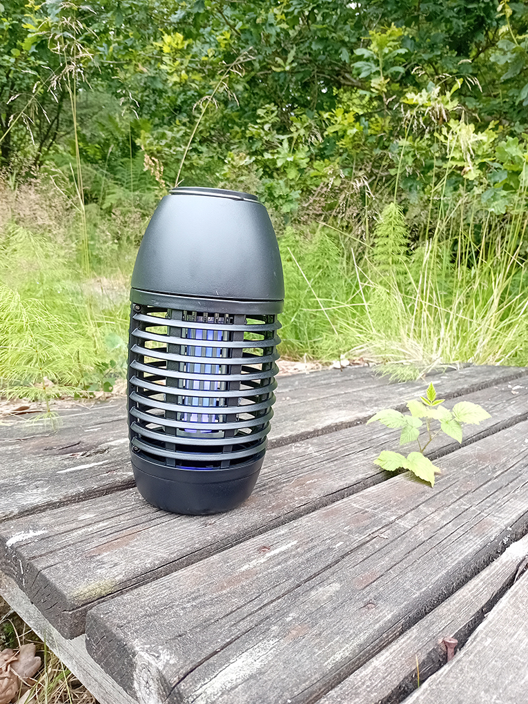 Avsedd för användning inomhus eller utomhus i trädgårdar eller på uteplatser. Det elektriska nätet avger ett uv-ljus som attraherar insekter (som myggor). När insekterna kommer i kontakt med det elektriska nätet dör de. Perfekt för campingen eller tältsemestern.
