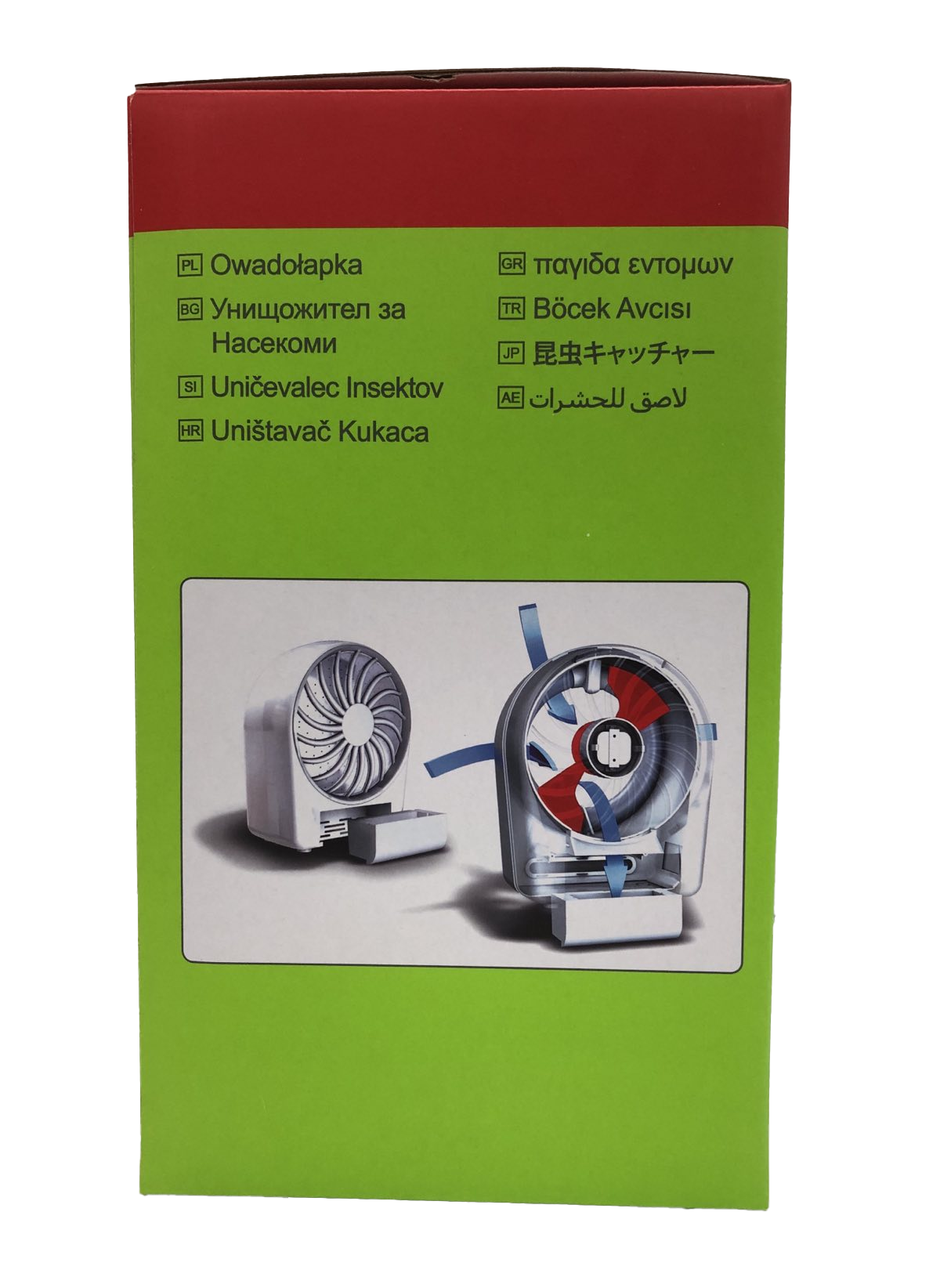 - Sisäänrakennettu tuuletin: Voimakas tuuletin varmistaa, että hyönteiset imetään nopeasti säiliöön.
