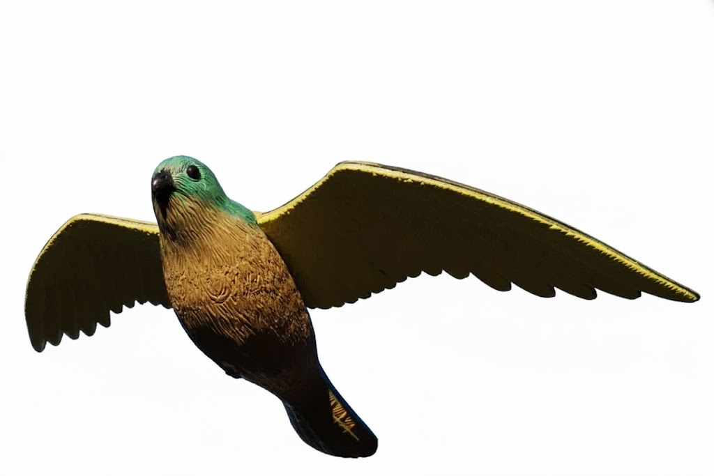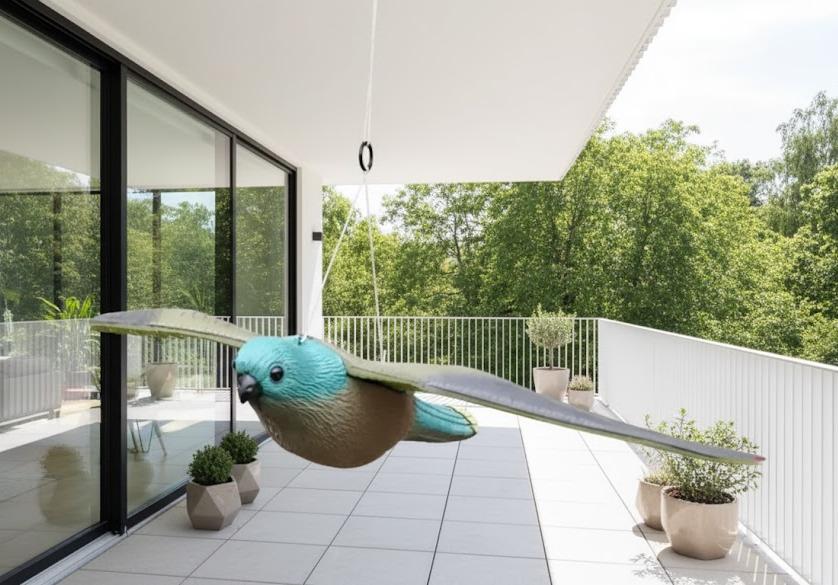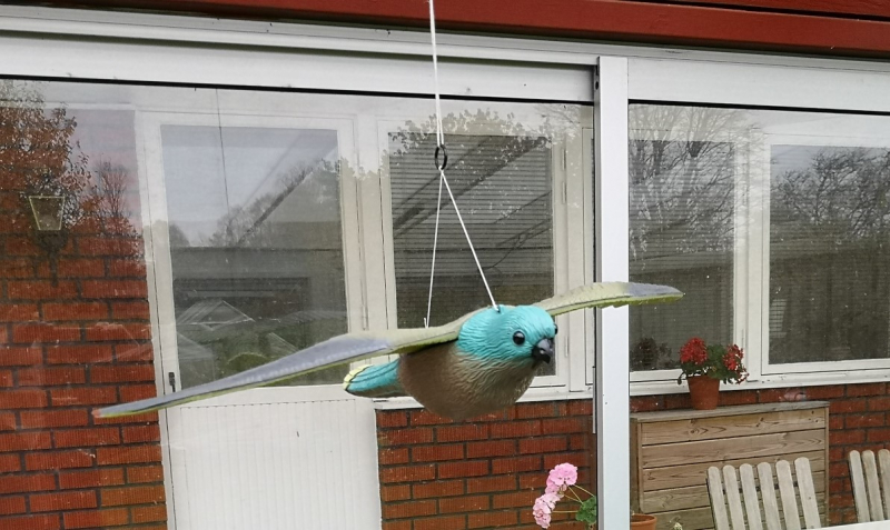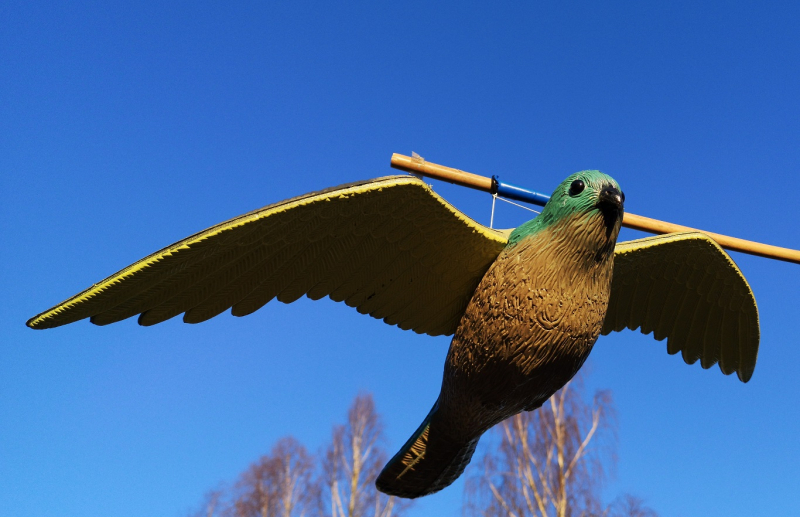 Linnunkarkotin: Lentävä haukka toimitetaan ripustusjärjestelmän kanssa, joten se on helppo sijoittaa. Kun karkotin liikkuu tuulen mukana, se pelottaa muita lintuja vahingoittamatta niitä.