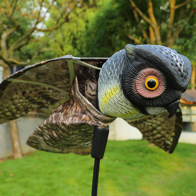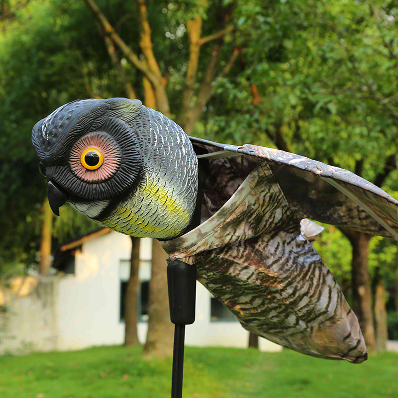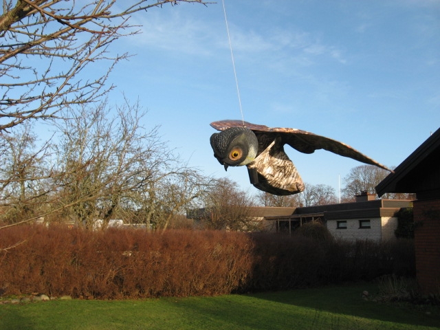 Ainutlaatuinen linnunkarkotin, joka koostuu kovamuovisesta päästä sekä siivistä ja vartalosta, jotka on valmistettu kangasmateriaalista. Tämä muotoilu saa pöllön liikkumaan tuulen mukana luonnollisessa metsästysasennossa ja karkottaa tehokkaasti erilaisia lintuja. Pöllön siipien kärkiväli on yli metrin.