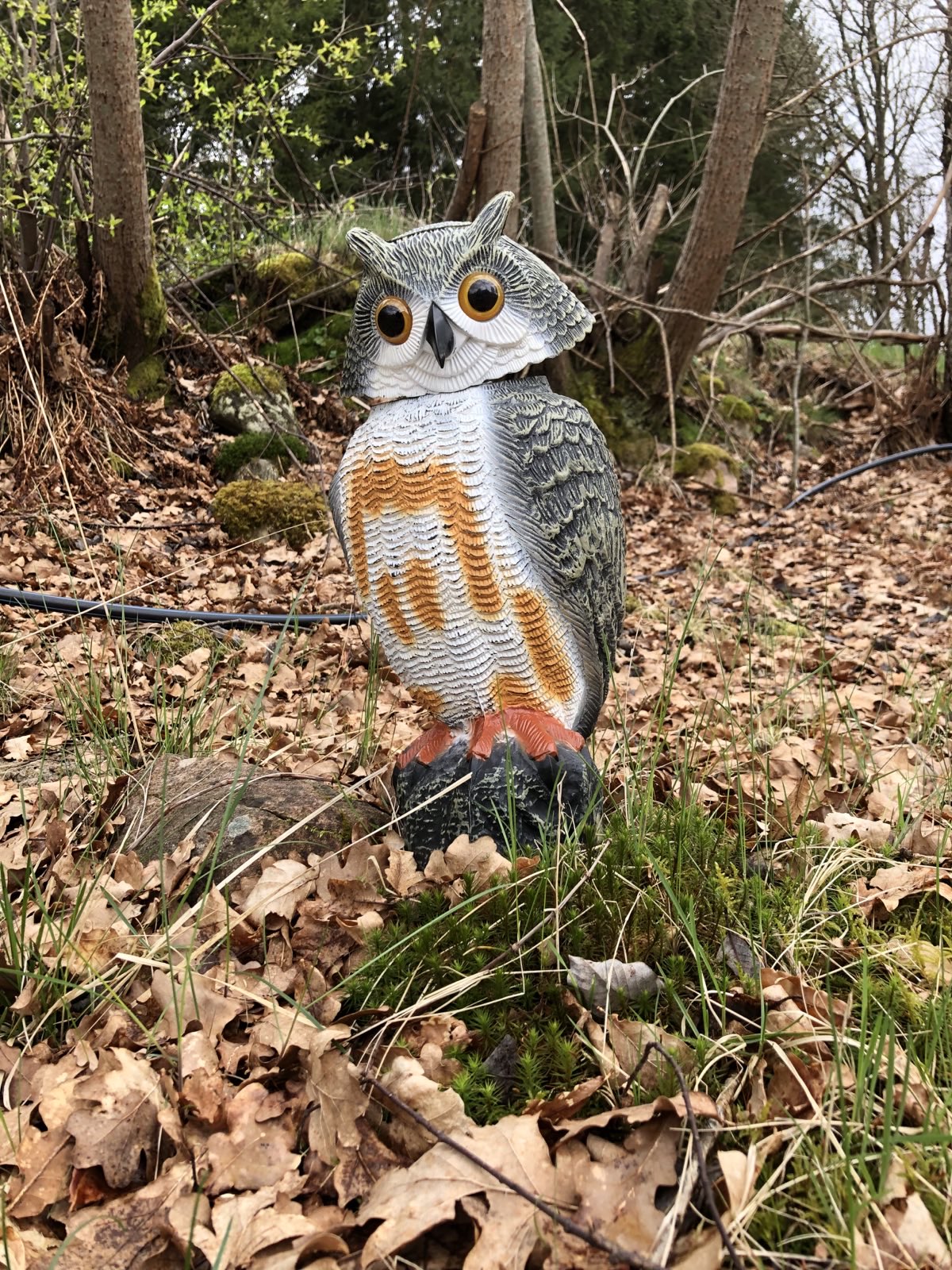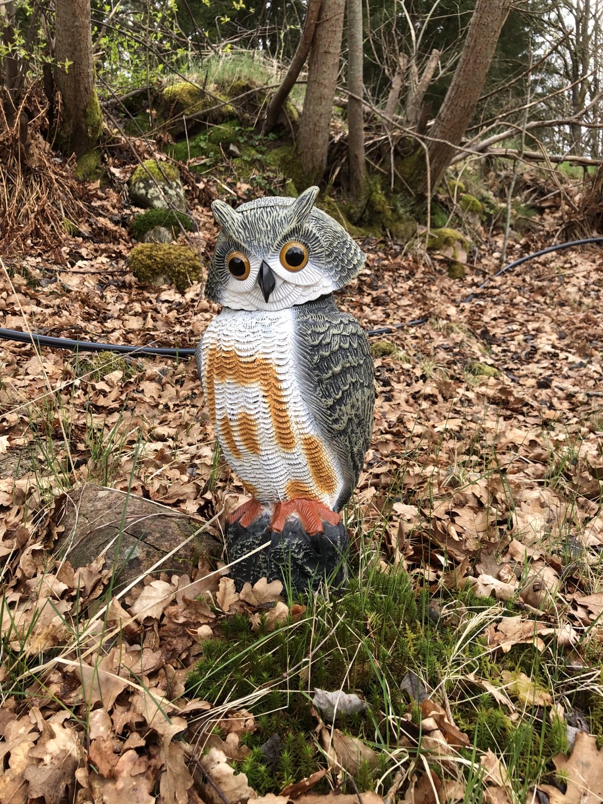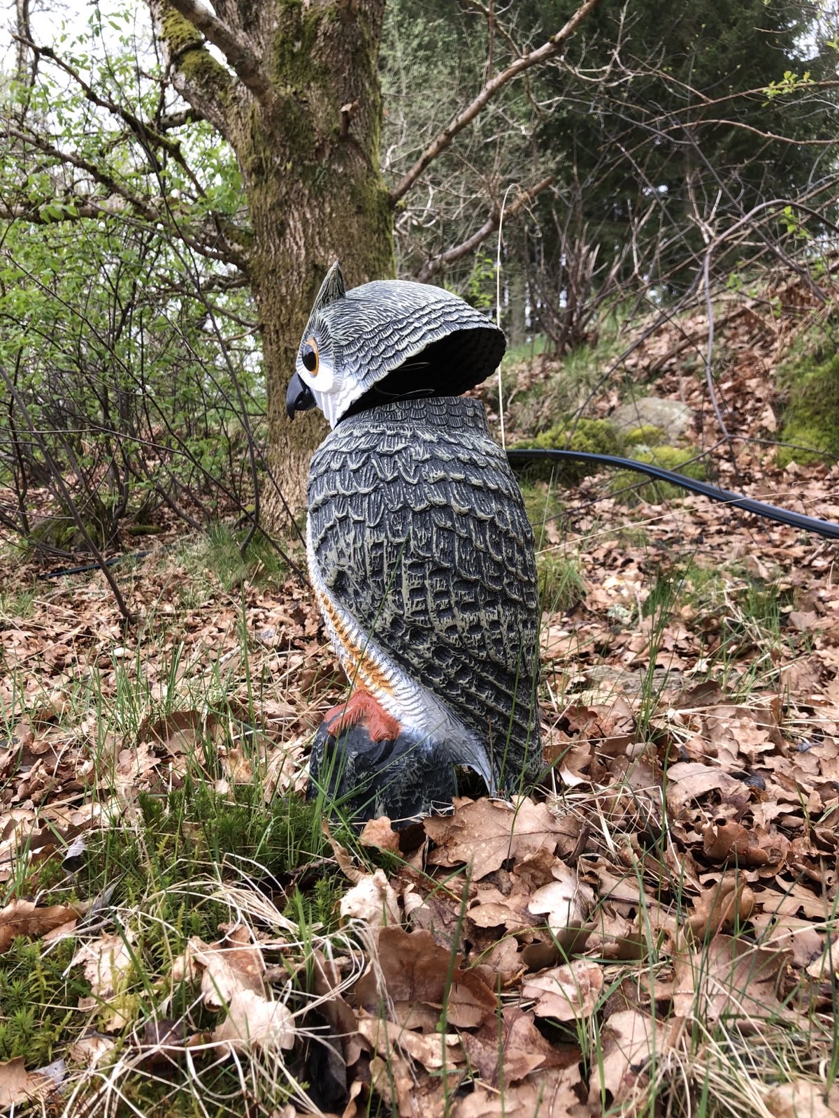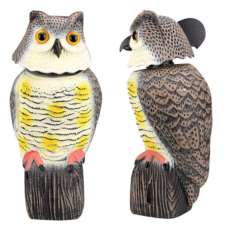 - Tuulivoimalla pyörivä pää, joka saa pöllön näyttämään elävältä.