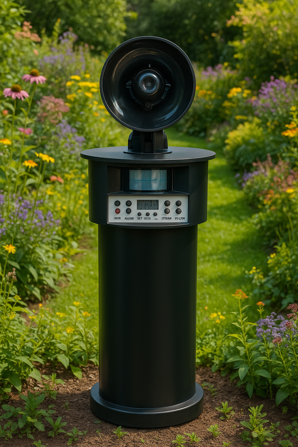 Lintukarkotin Plus yhdistää petolintujen huudot, lintujen kirkaisut, laukaukset ja koiran haukunnan sekä erittäin voimakkaat vilkkuvat valot karkottamaan tehokkaasti ja inhimillisesti tuholaislintuja ja ei-toivottuja villieläimiä.