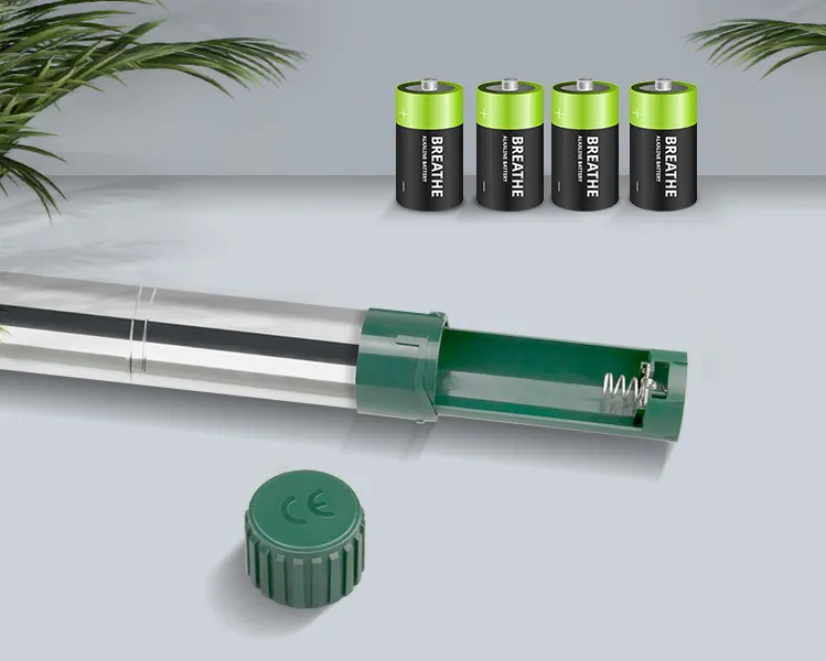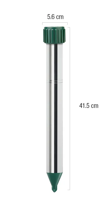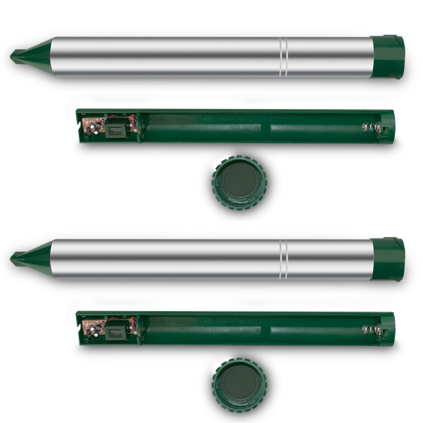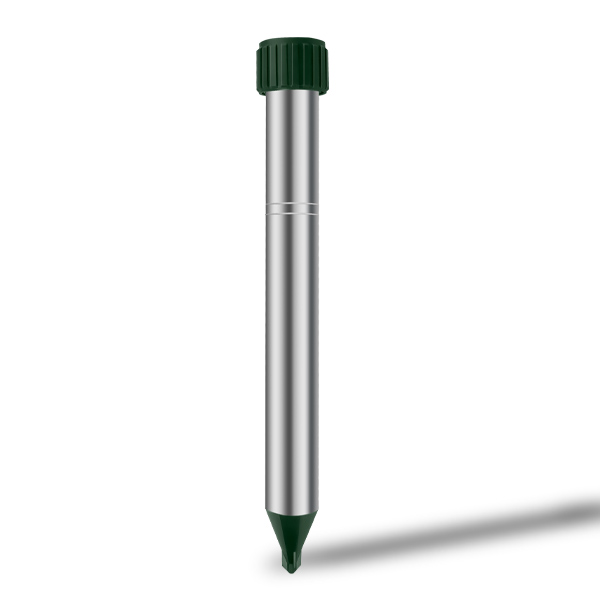 - Nyt karkotin vuorottelee äänen lähettämisen ja värinän välillä. HUOM: Ääni on erittäin voimakas, jos kokeilet sitä ilmassa, mutta maahan työnnettynä se kuuluu matalana äänenä. Emme suosittele sijoittamaan karkotinta esimerkiksi terassille, jos ääni häiritsee.