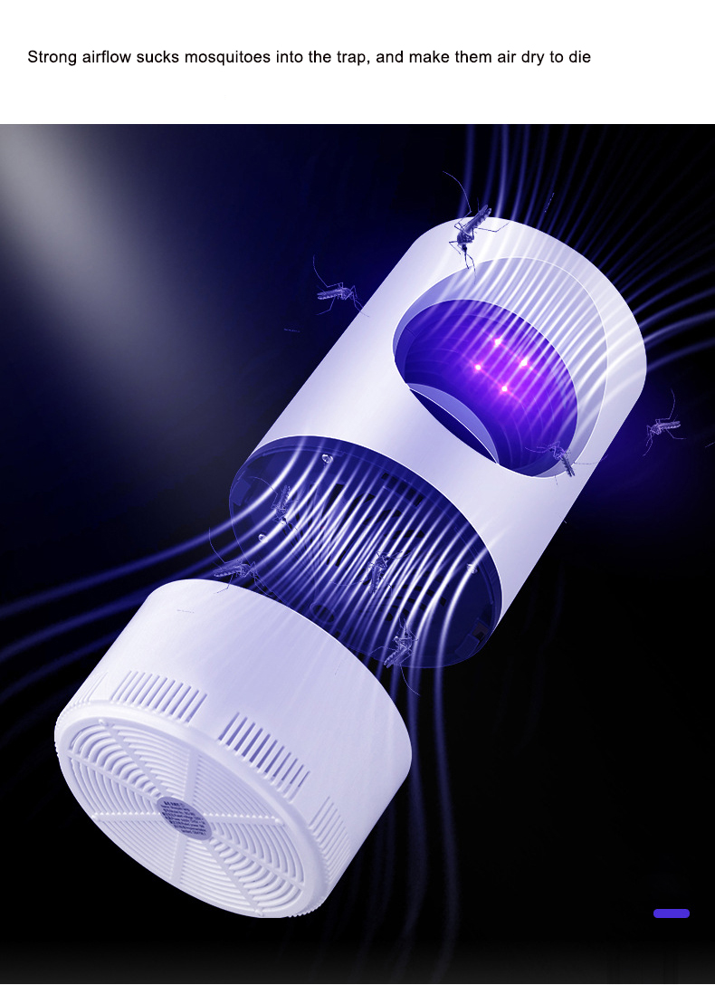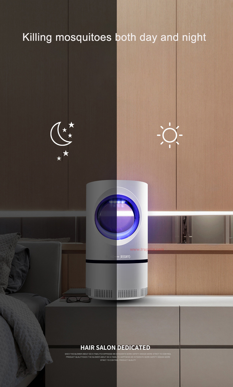 Tämä innovatiivinen hyttyskarkotin houkuttelee tehokkaasti hyönteisiä sinisellä valollaan ja imee ne sisään, pitäen kotisi vapaana ärsyttävistä hyttysistä, banaanikärpäsistä, surukärpäsistä ja muista pienistä lentävistä hyönteisistä. Tarkoitettu sisäkäyttöön.